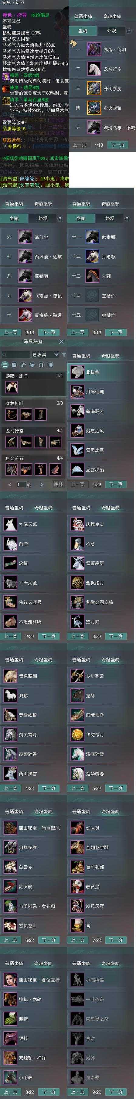【坐骑】13个[踏炎不羁, 西风瘦逐狱, 阵营狼, 青海骢黯月, 飞霞骠惊帆, 阵营虎, 劲足赤兔衍羽, 白龙马, 霸红尘]