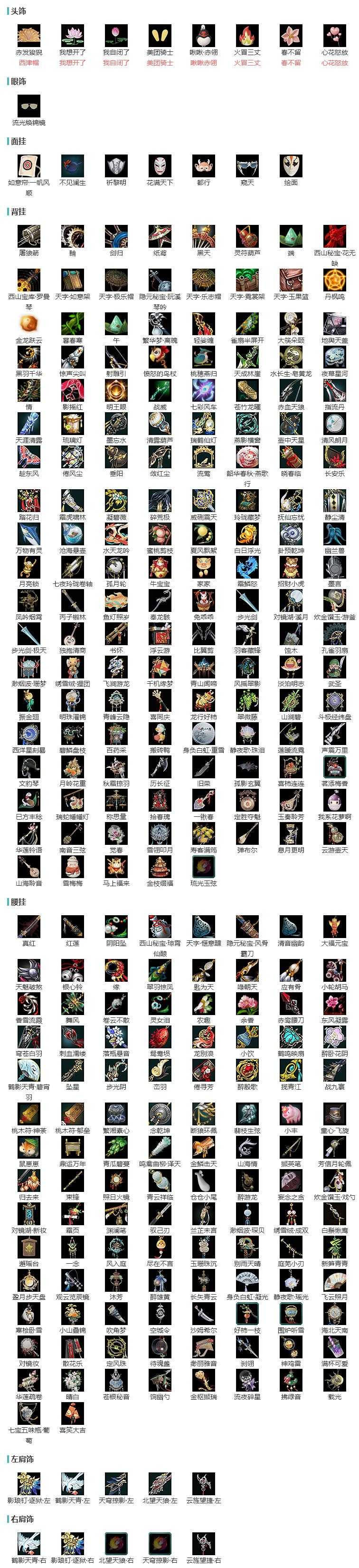 【肩饰】5左,5右,[北望天狼·左, 天穹掠影·左, 鹤影天青·左, 云旌望捷·左][北望天狼·右, 天穹掠影·右, 鹤影天青·右, 云旌望捷·右]