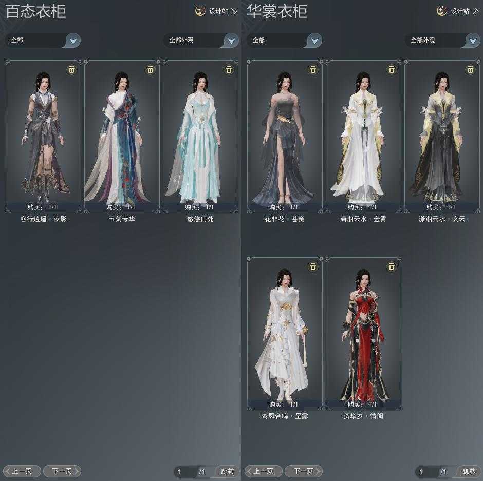 【成衣】总计8件,单盒成衣0件,限时限量6件,商城1件,下架1件