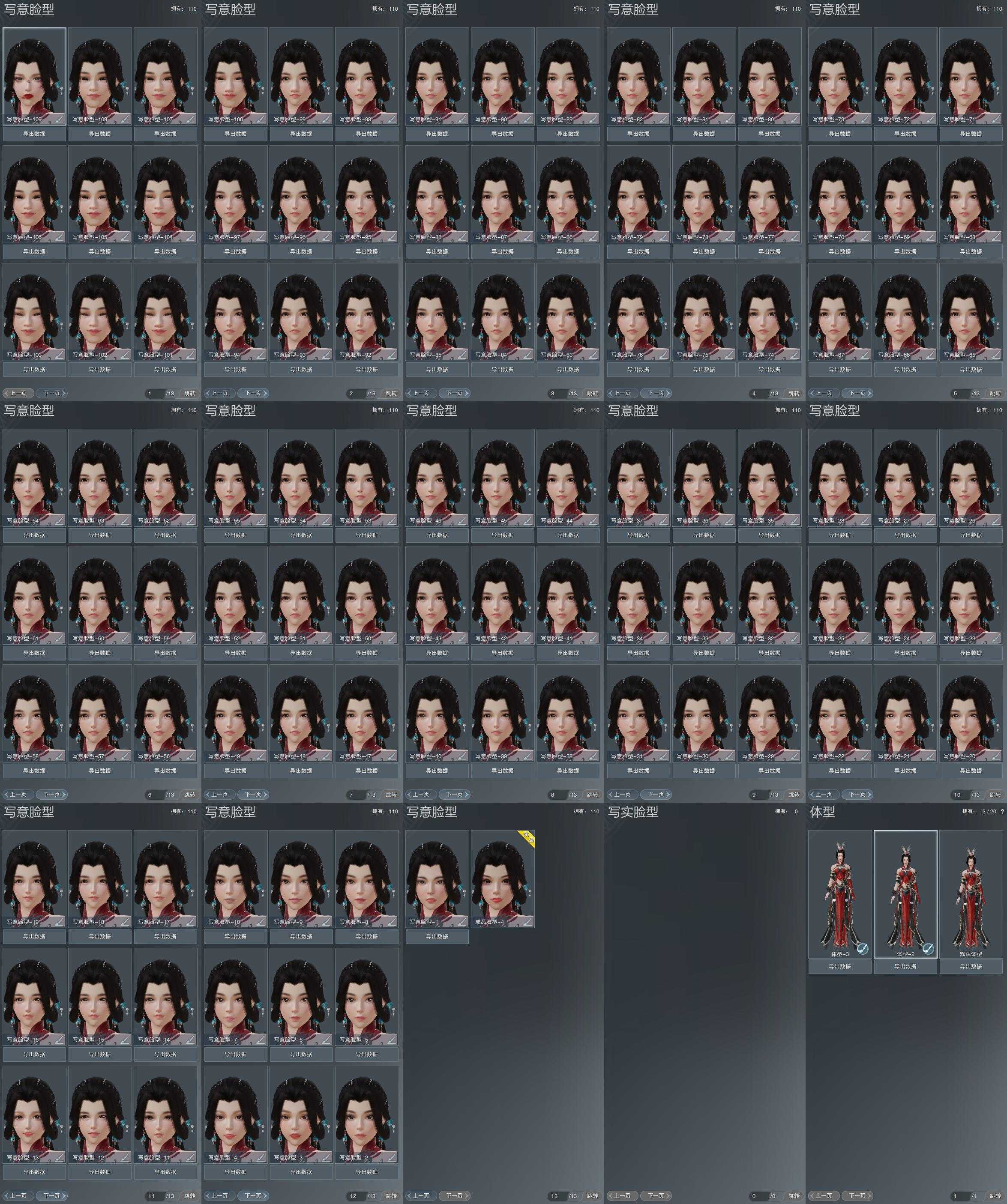 【捏脸】写意脸型110个,写实脸型0个,体型3个