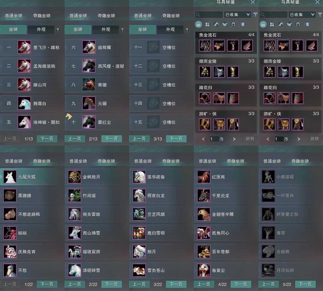 【坐骑】10个[西风瘦逐狱, 里飞沙踏秋, 络神骏胭扣, 霸红尘]