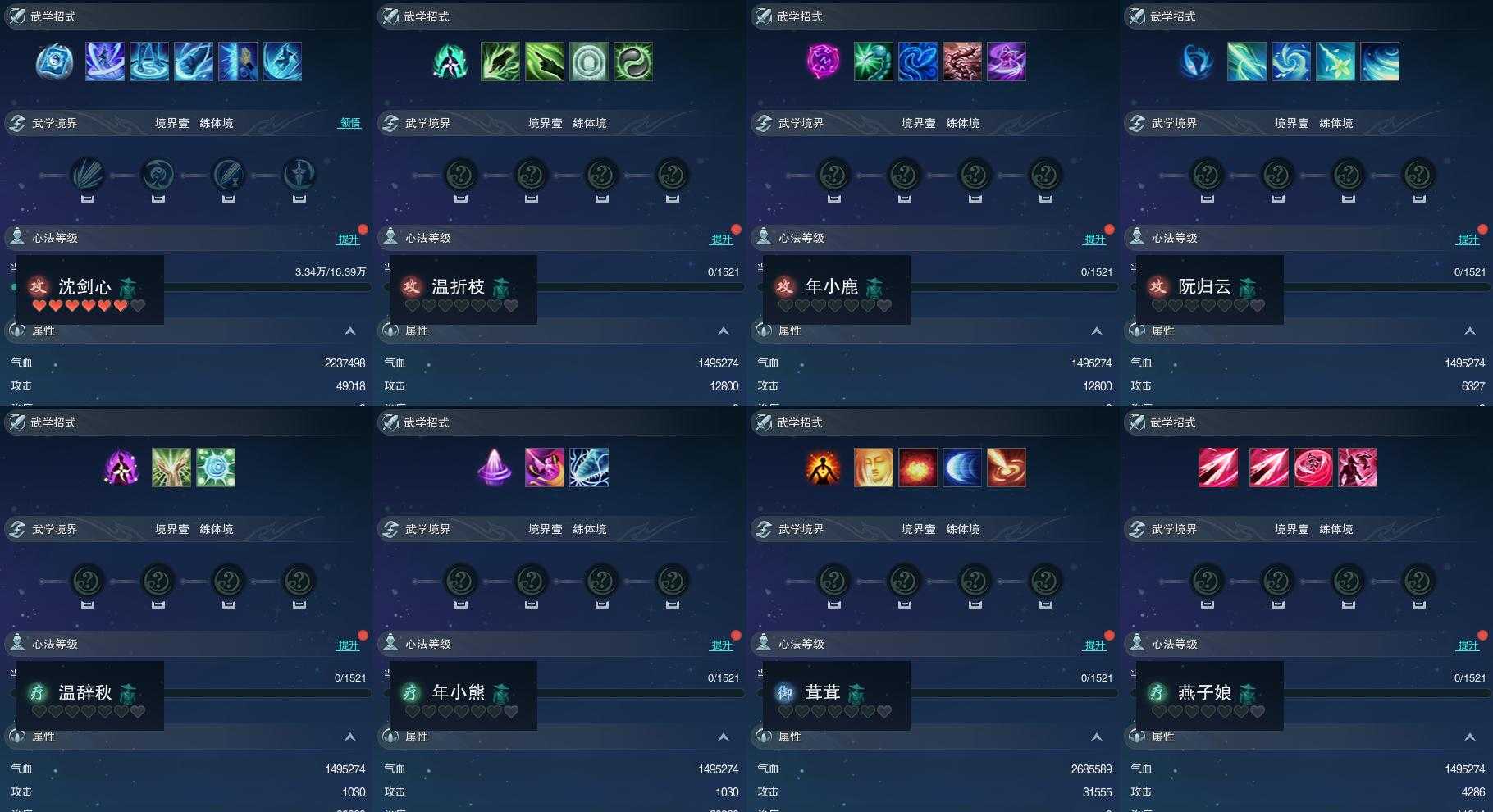 【同伴】沈剑心72级境界壹,温折枝1级境界壹,年小鹿1级境界壹,阮归云1级境界壹,温辞秋1级境界壹,年小熊1级境界壹,茸茸志1级境界壹,燕子娘1级境界壹