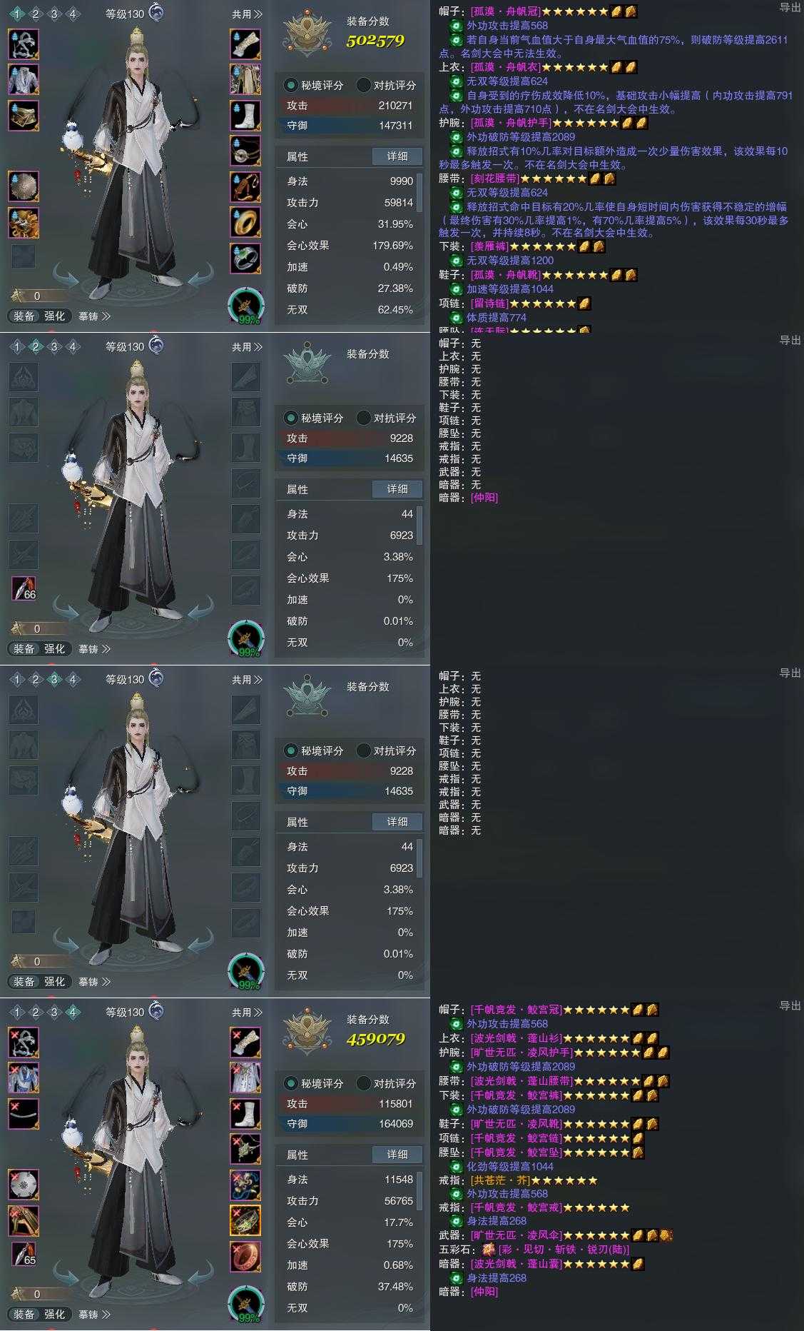 【装备】130级,凌海诀PVE502579,装备二0,装备三0,凌海诀PVP459079