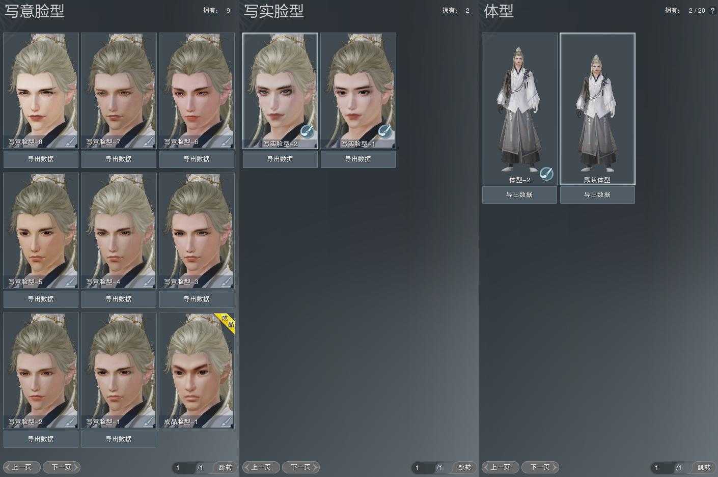 【捏脸】写意脸型9个,写实脸型2个,体型2个