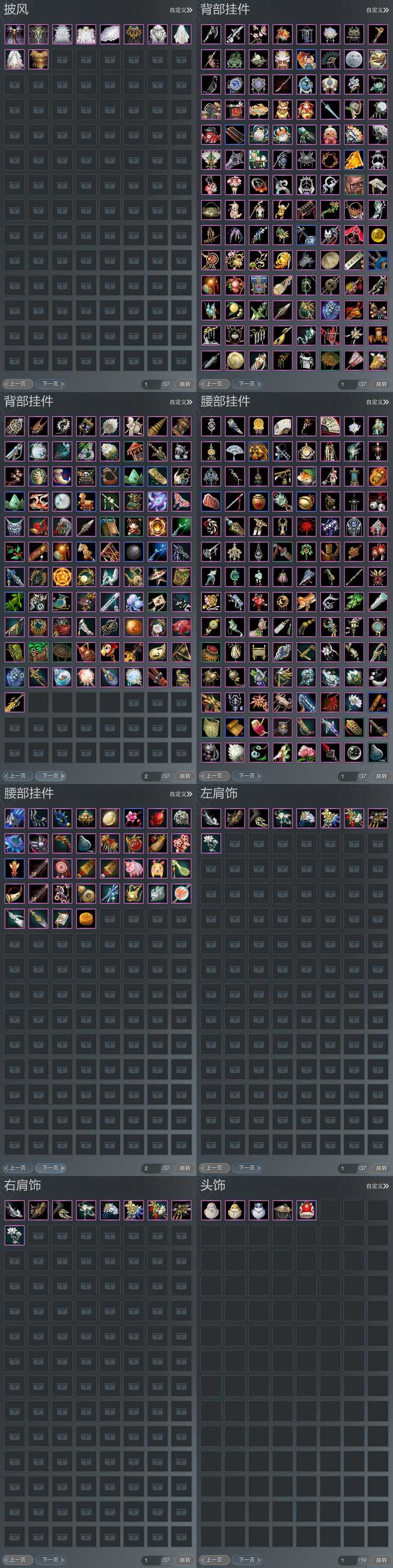 【肩饰】9左,9右,[双鱼曳波·无量·左, 歃血关山·左, 碧海云仙·左, 云中雪霁·左, 浮屠明音·左][歃血关山·右, 碧海云仙·右, 云中雪霁·右, 浮屠明音·右]