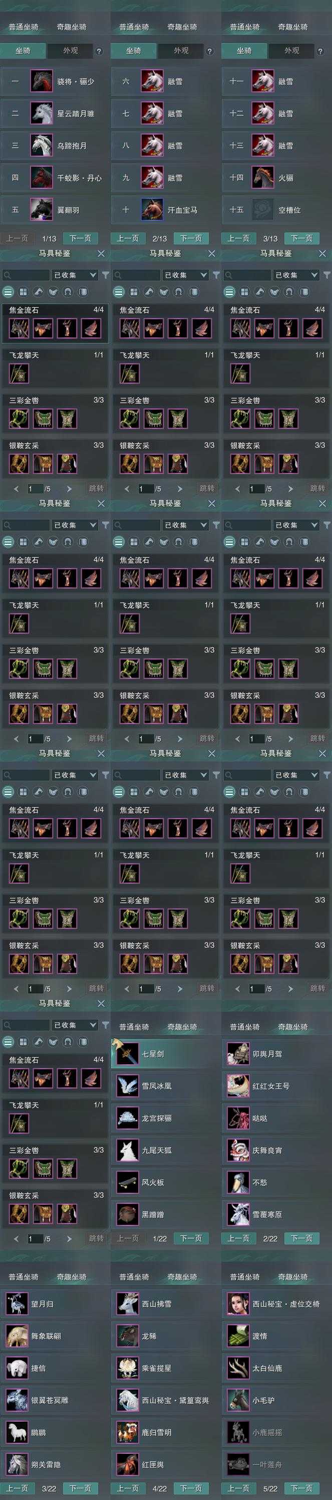 【坐骑】14个[星云踏月骓, 乌蹄抱月, 千蛟影丹心, 骁将骊少]