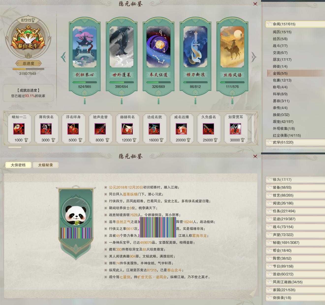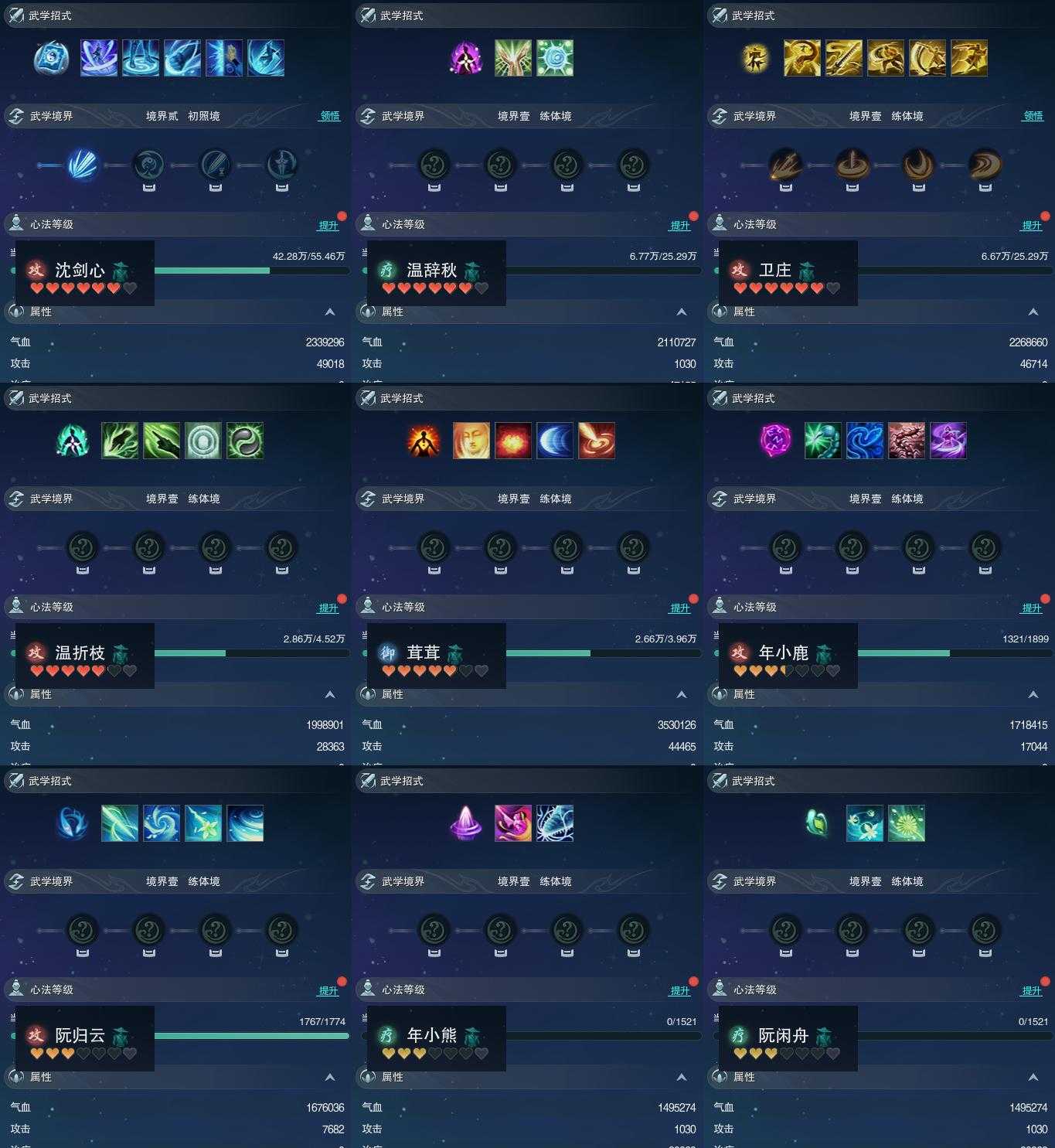 【同伴】沈剑心81级境界贰,温辞秋74级境界壹,卫庄志74级境界壹,温折枝61级境界壹,茸茸志60级境界壹,年小鹿28级境界壹,阮归云23级境界壹,年小熊1级境界壹,阮闲舟1级境界壹