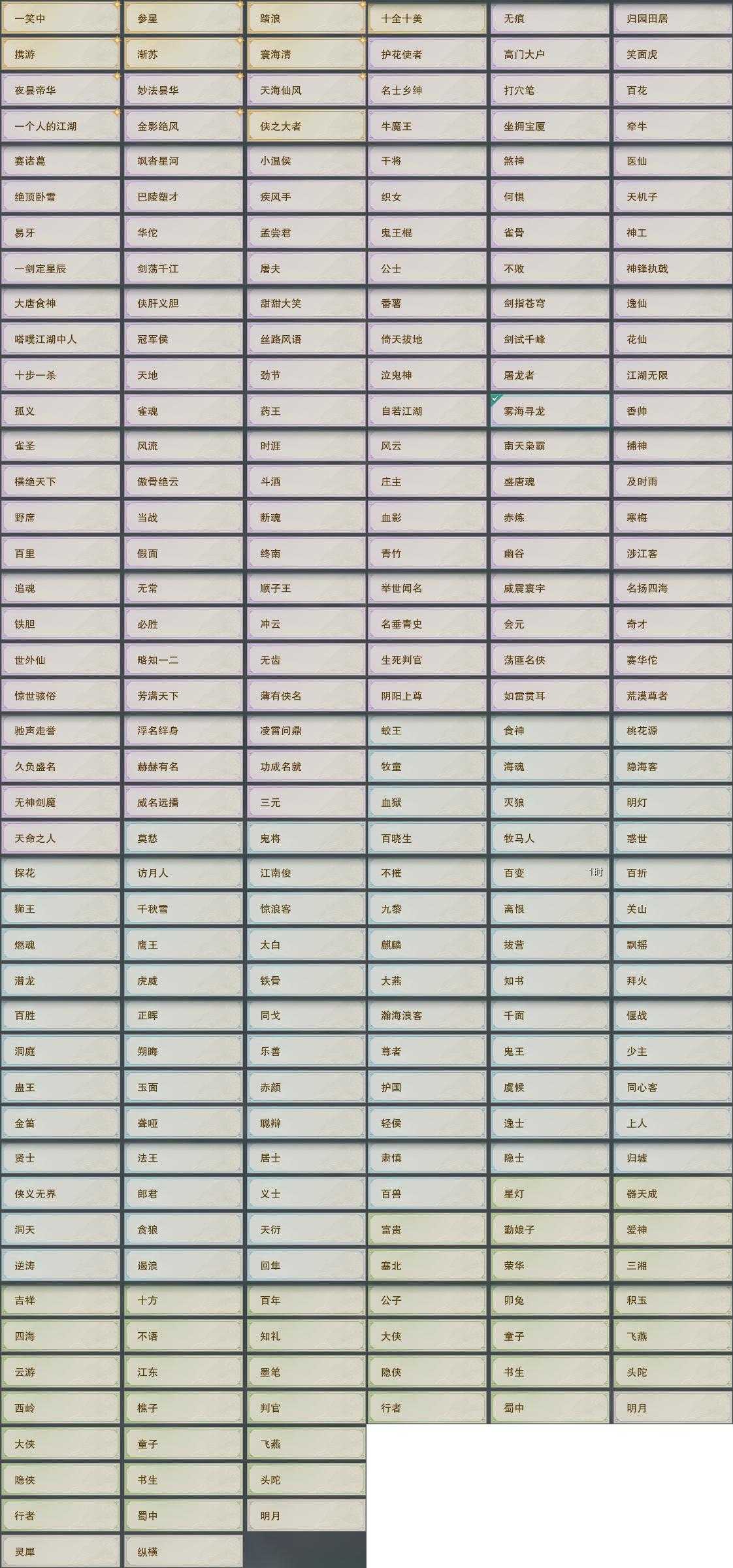 【奇珍】30个[枫林酒, 红衣歌, 归乡路, 孩童书, 至尊宝, 石敢当, 青草歌, 荆轲刺, 破晓鸣, 沙海谣]