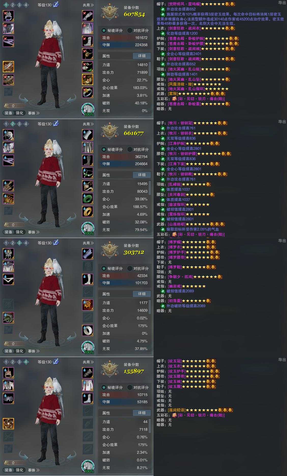 【装备】130级,北傲诀PVP607854,北傲诀PVE661677,装备三303712,装备四155897