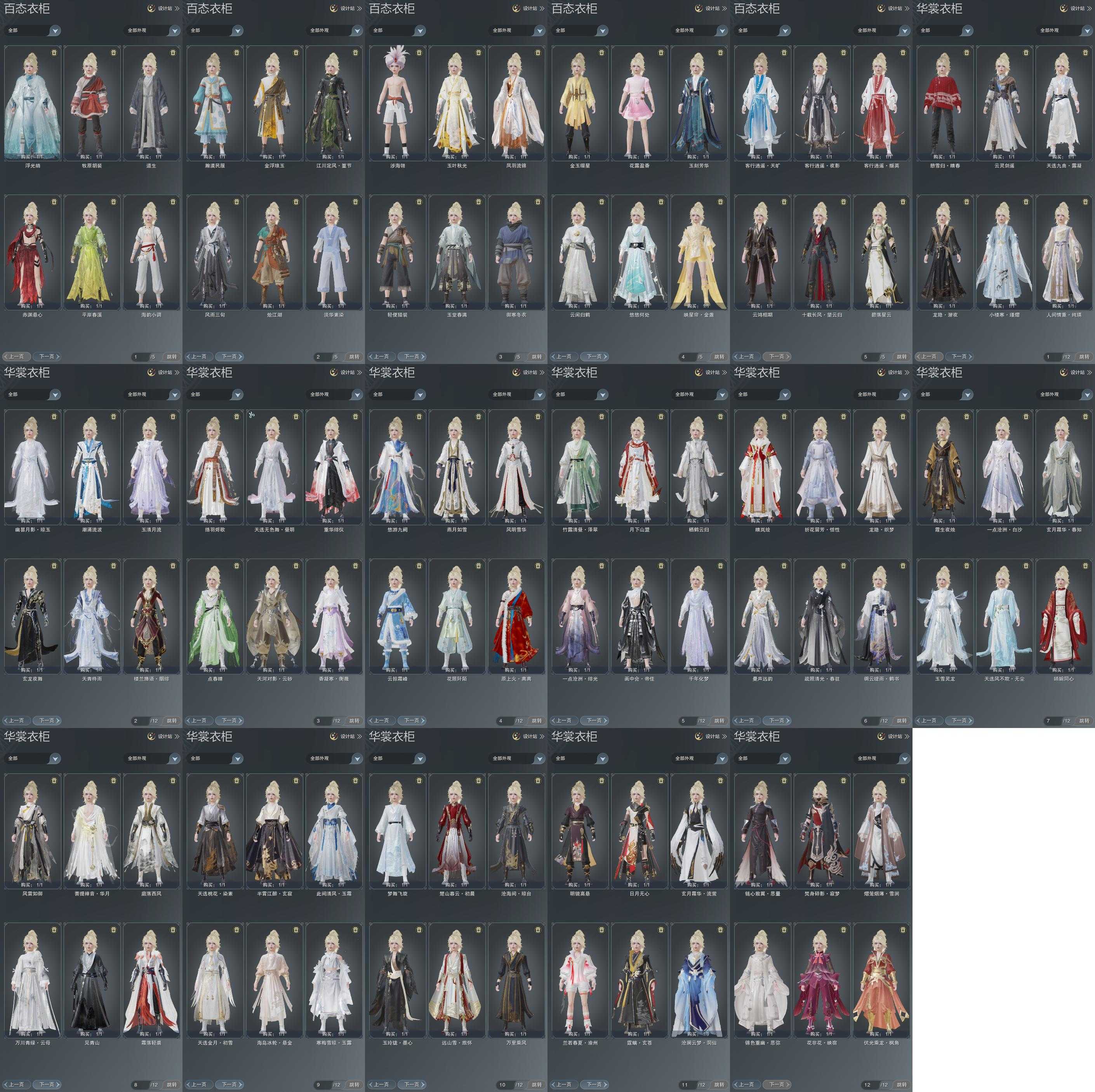 复刻:[沧海间琼台, 白机车, 黑机车, 复刻白二娃, 天选粉无粉, 白二公主, 复刻蓝不欺, 远山雪旅怀, 五期福袋成衣, 复刻白玄月, 复刻蓝绸云, 复刻紫香凝, 画中会帝佳]