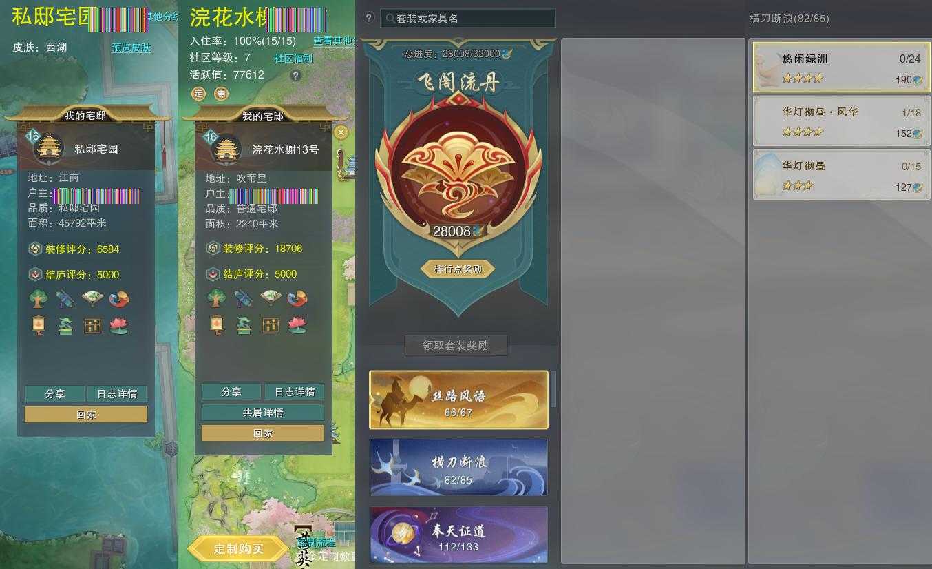 【家园】房屋等级16,社区等级了,私邸宅园,梓行点28008
