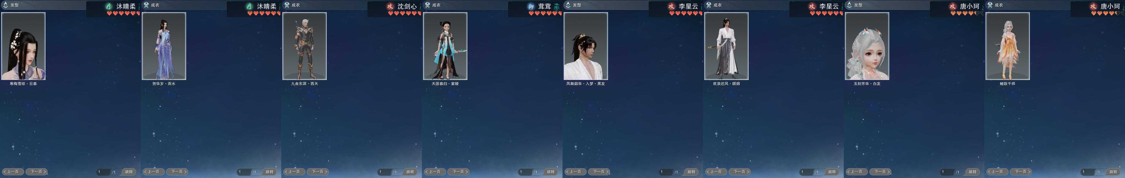 盒子:[踏云盒, 蓝曲塘盒(缺黑发), 金凤舞盒(标), 四代七夕盒, 蘑菇盒, 四中蓝盒, 青盒, 牛盒, 新青盒, 三代元宵盒, 樱花盒, 沧海盒, 唐风玉壶盒, 白四元盒, 蓝游园(豪), 红六七盒, 七七盒(缺白发), 芙蓉盒, 蓝异域盒, 花滑盒, 星源盒, 红懒猪(标), 除夕盒, 踏青盒, 灵龙盒, 白幽昙(标), 白幽馥(标), 游龙盒, 潮涌盒, 仙剑盒, 魔镜盒, 绿千山(标), 绿寻香(标), 绿故梦(标), 粉毛衣(标)]
