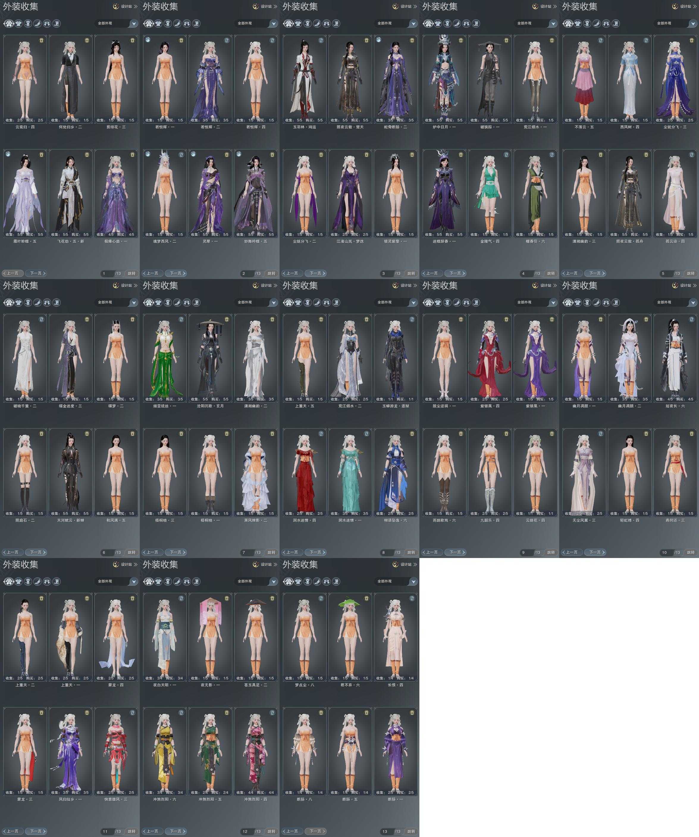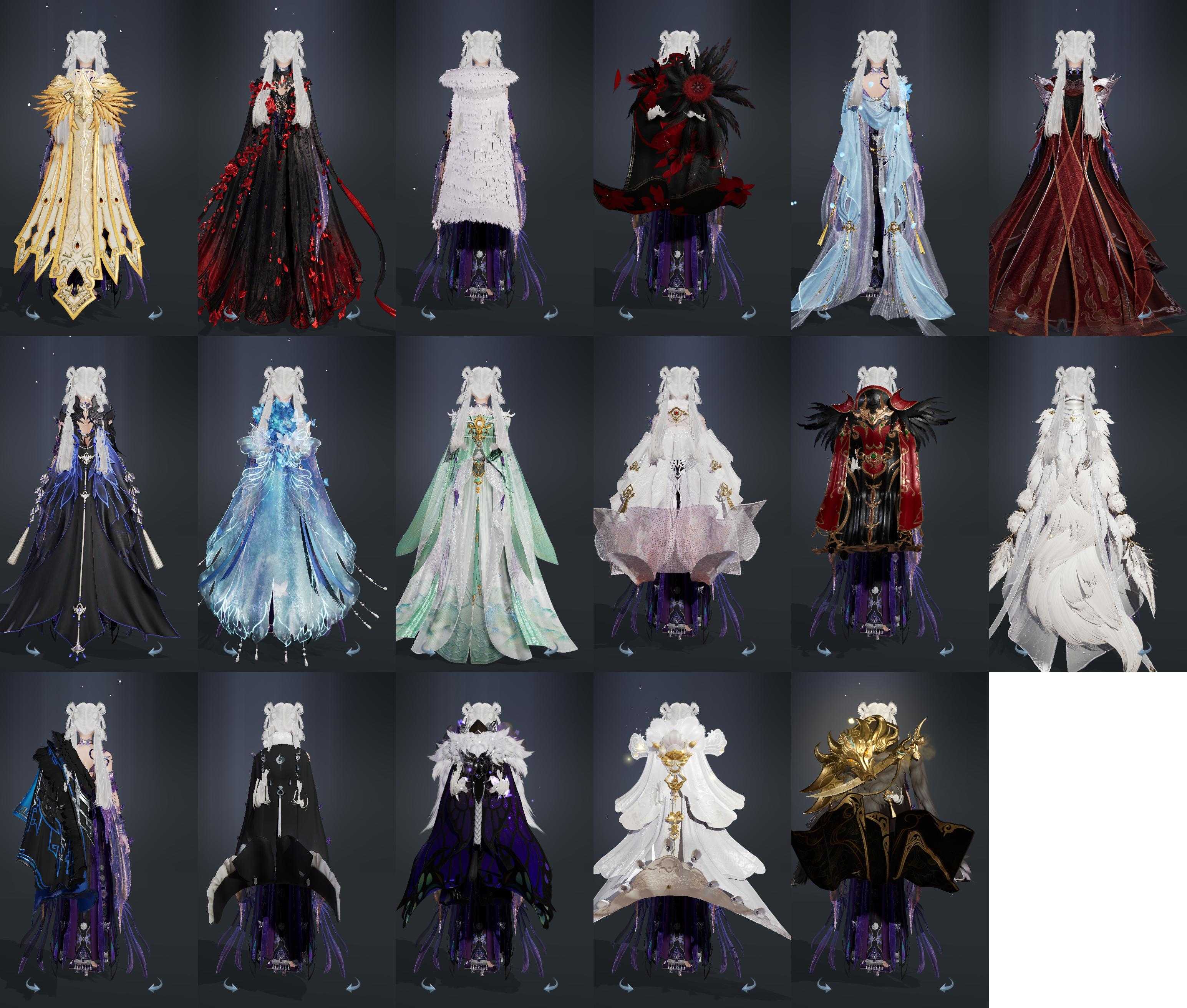 单盒成衣:[黑谪仙衣, 白菩提衣, 白海岛衣, 白雪人衣, 黑沧洲盒衣, 黑幽馥衣替, 婚纱衣, 粉鹿衣, 蓝鹭衣, 彩陇西成衣, 燕月盒衣, 红寻香盒衣, 傀儡盒衣, 渡我衣, 十七盒衣, 粉浮光, 涉烟尘流徵]