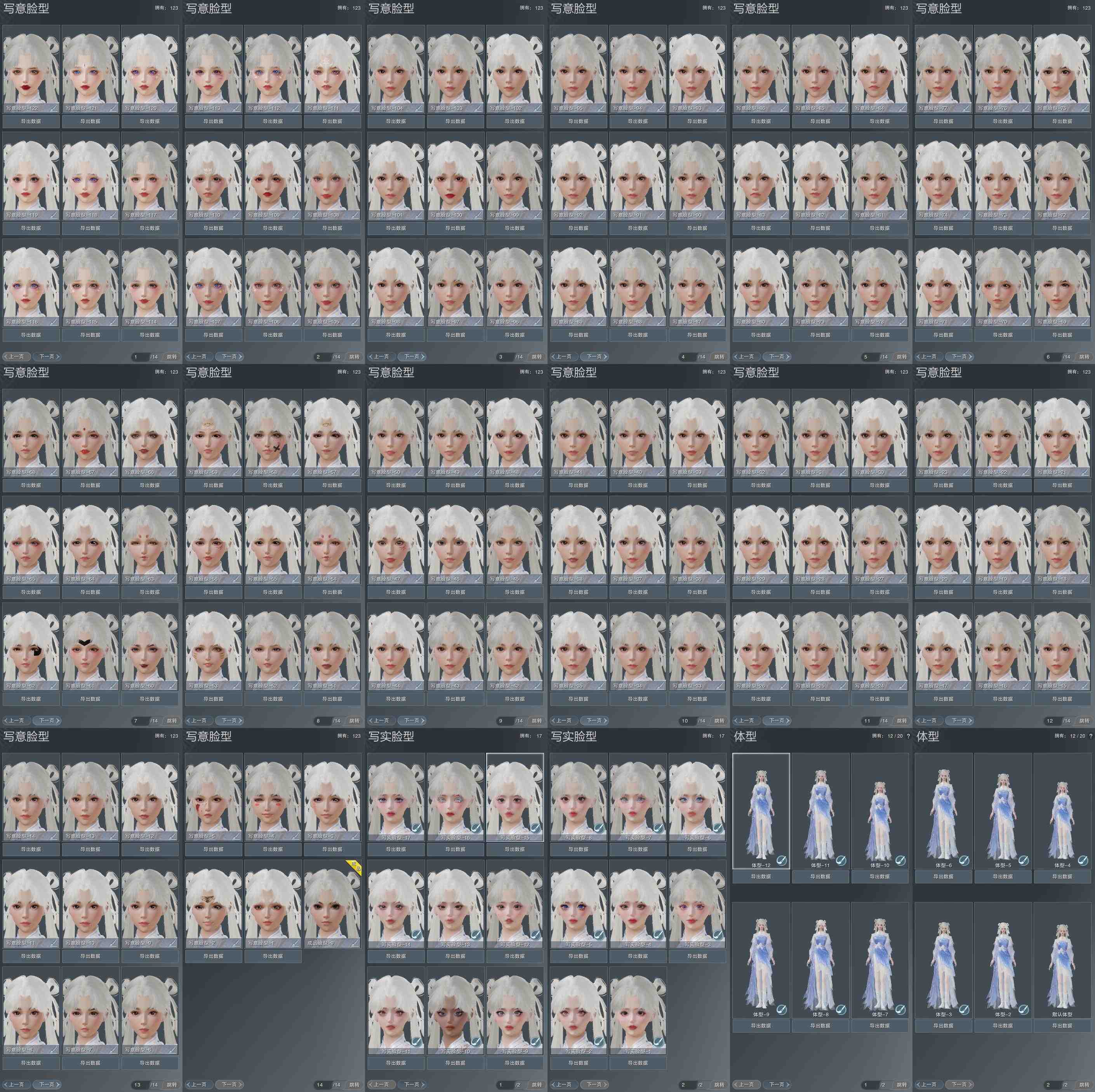 【捏脸】写意脸型123个,写实脸型17个,体型12个