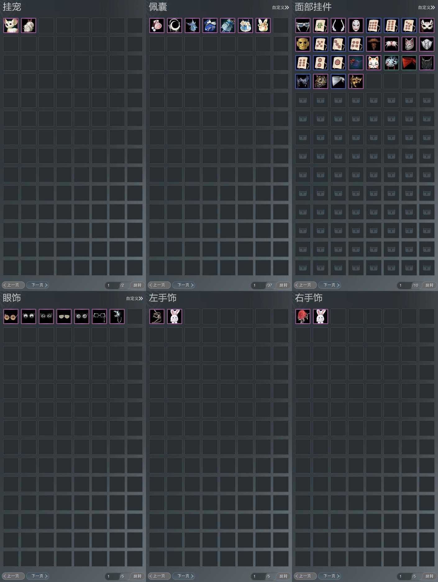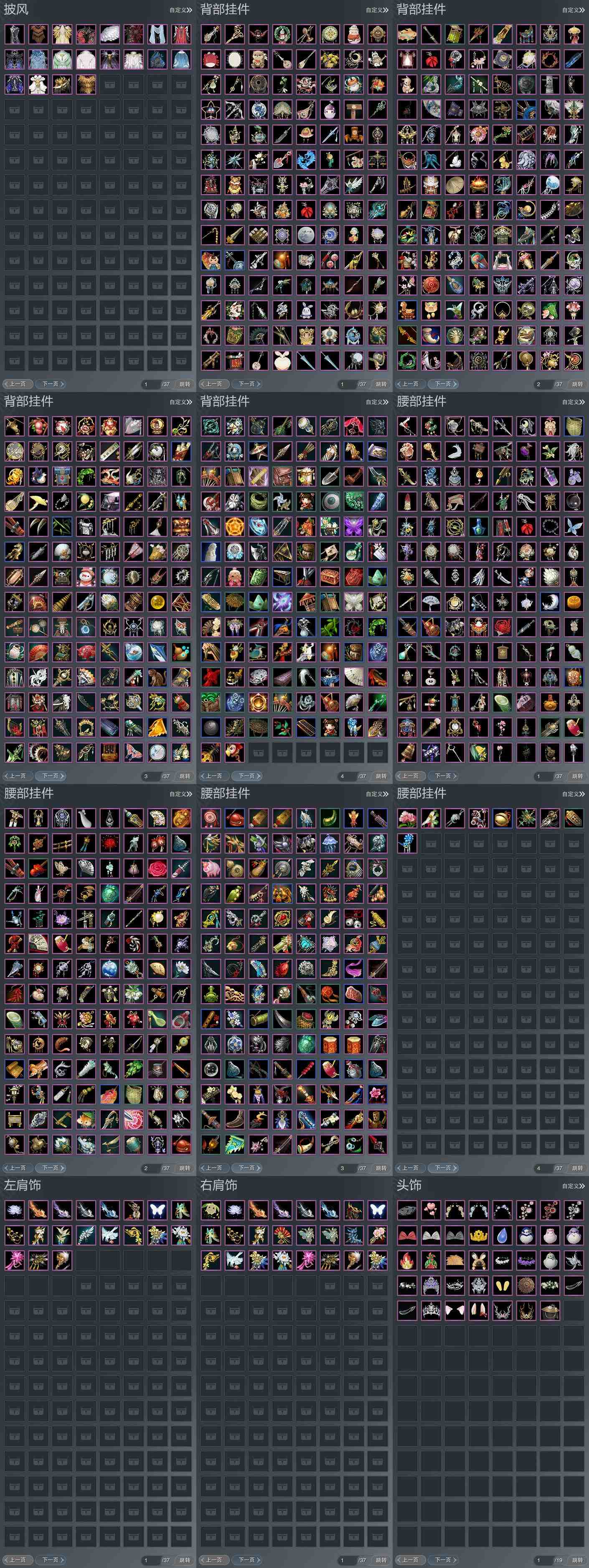 【肩饰】19左,24右,[绝代仙·千幻·左, 双鱼曳波·慧福·左, 双鱼曳波·如意·左, 双鱼曳波·无量·左, 双鱼曳波·极乐·左, 觅花踪·碧空·左, 青池泠月·左, 尘间清欢·左, 鹤影天青·左][小叶灵·右, 绝代仙·千幻·右, 觅花踪·碧空·右, 青池泠月·右, 尘间清欢·右, 玄天覆雪·右, 鹤影天青·右]