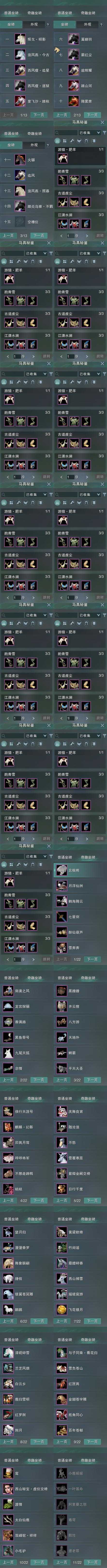 【坐骑】14个[踏炎不羁, 西风瘦逐狱, 西风瘦追星, 里飞沙踏秋, 挥戈明影, 浪风燕今古, 霸红尘]