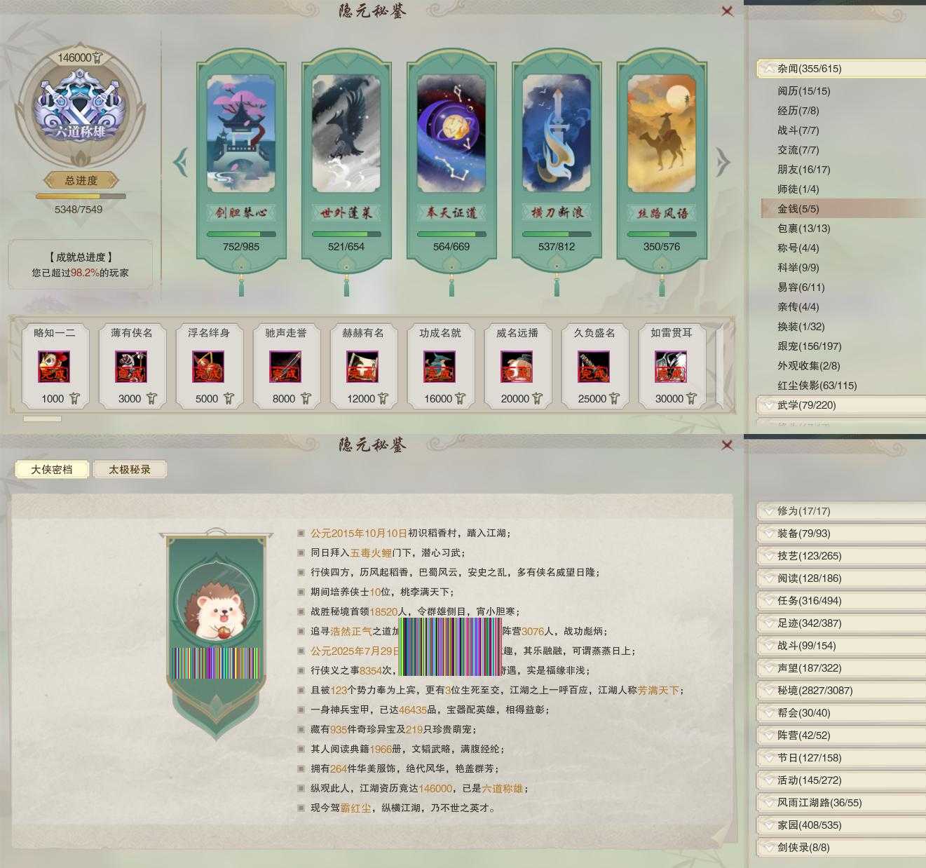 【同伴】沐晴柔86级境界伍,沈剑心84级境界壹,白鹊志82级境界壹,康宴别81级境界壹,温辞秋81级境界壹,卫庄志81级境界壹,阮归云80级境界壹,李逍遥80级境界壹,贺闲志79级境界壹,盖聂79级境界壹,赵灵儿77级境界壹,茸茸志76级境界壹,李星云76级境界壹,温折枝74级境界壹,年小熊74级境界壹,月嘉禾74级境界壹,年小鹿73级境界壹,阮闲舟73级境界壹,刀马志72级境界壹,姜棠意68级境界壹,唐小珂66级境界壹,燕子娘65级境界壹,李萼意61级境界壹,费大劲58级境界壹