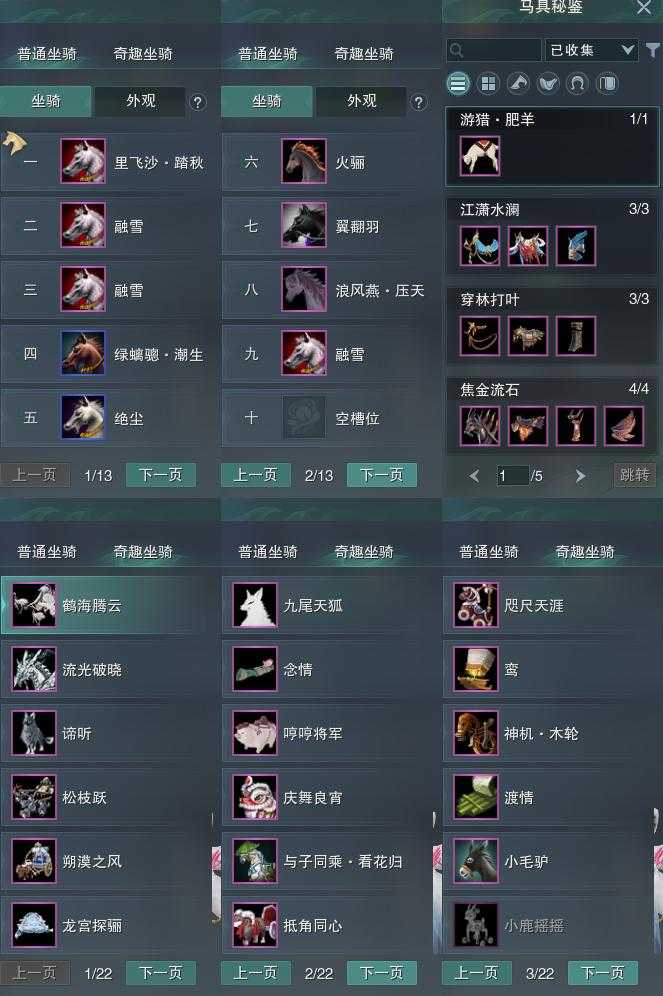 【坐骑】9个[绝尘, 里飞沙踏秋]