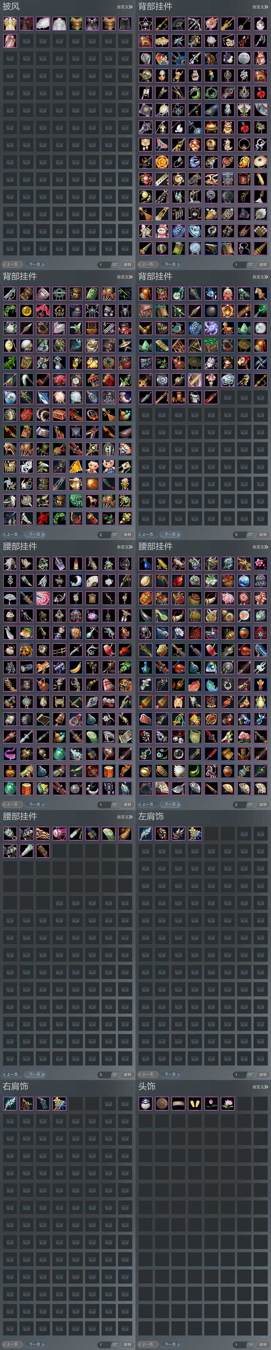 【披风】9个,[7W资历披风, 情R枕, 一代恶人, 14W资历披风, 三山披风, 素玉琼天]