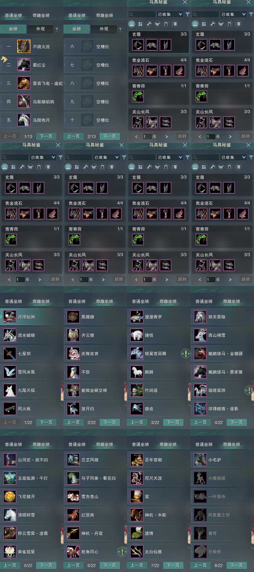 【奇趣】42个[雪凤冰凰, 淬锋暗旗·逐影, 兰船, 西山拂雪, 鲲鹏矮马金骢骠, 鲲鹏矮马墨夜骓, 瑶境宸游, 朔关雷隐, 乘雀揽星, 清砚碎雪]