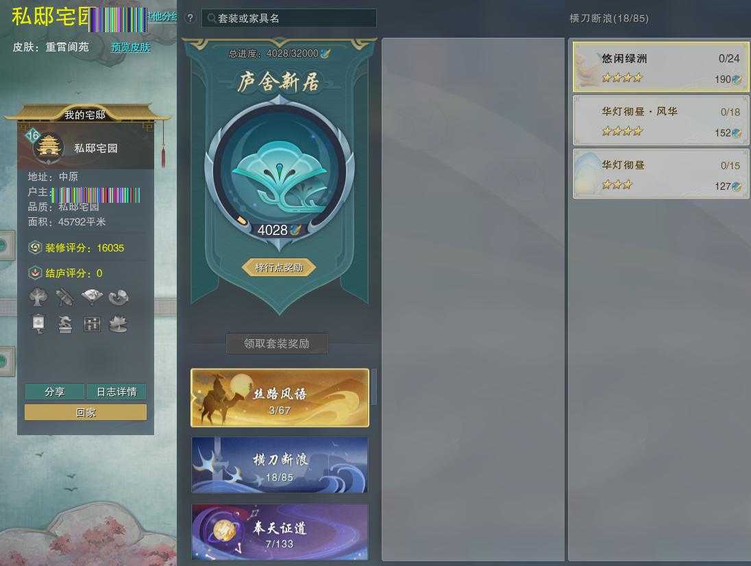【家园】房屋等级16,私邸宅园,梓行点4028