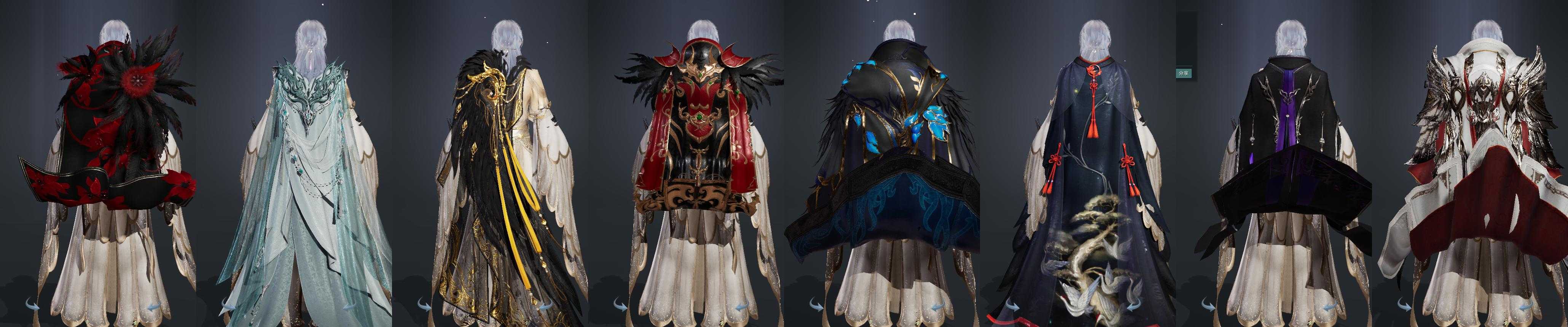 【披风】10个,[7W资历披风, 三山披风, 唐盒子披风, 白盒子披风, 花盒子披风, 黑狄仁杰, 星河玄梦, 云麒赫奕]