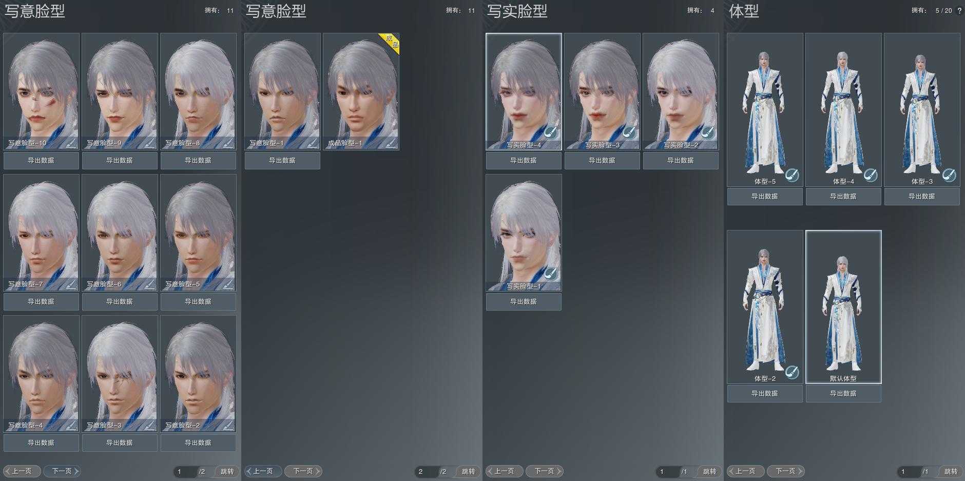 【捏脸】写意脸型11个,写实脸型4个,体型5个