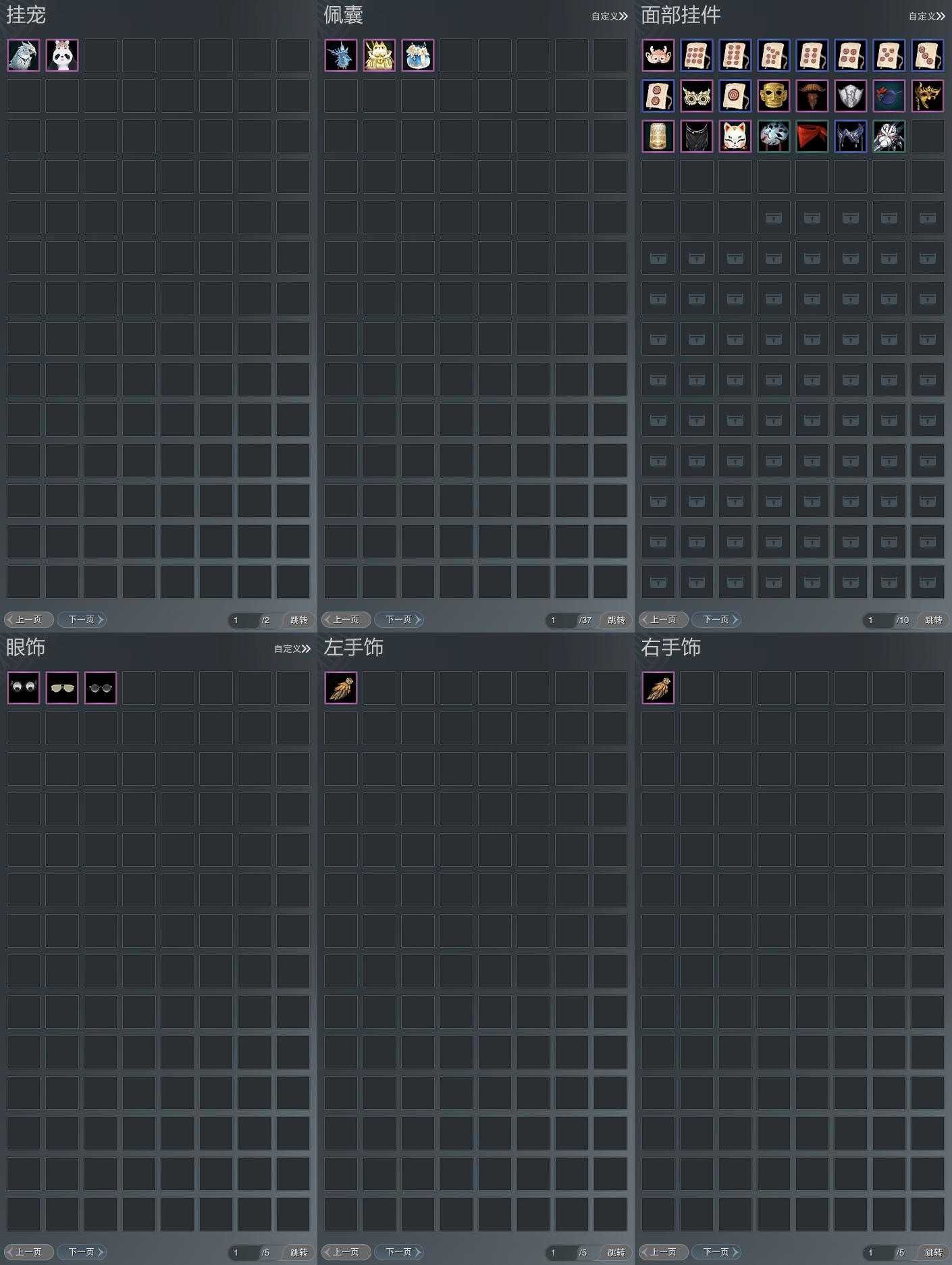 【肩饰】5左,5右,[天穹掠影·左, 染墨千秋·左, 北望天狼·左][觅花踪·黄云·右, 天穹掠影·右, 染墨千秋·右, 北望天狼·右]