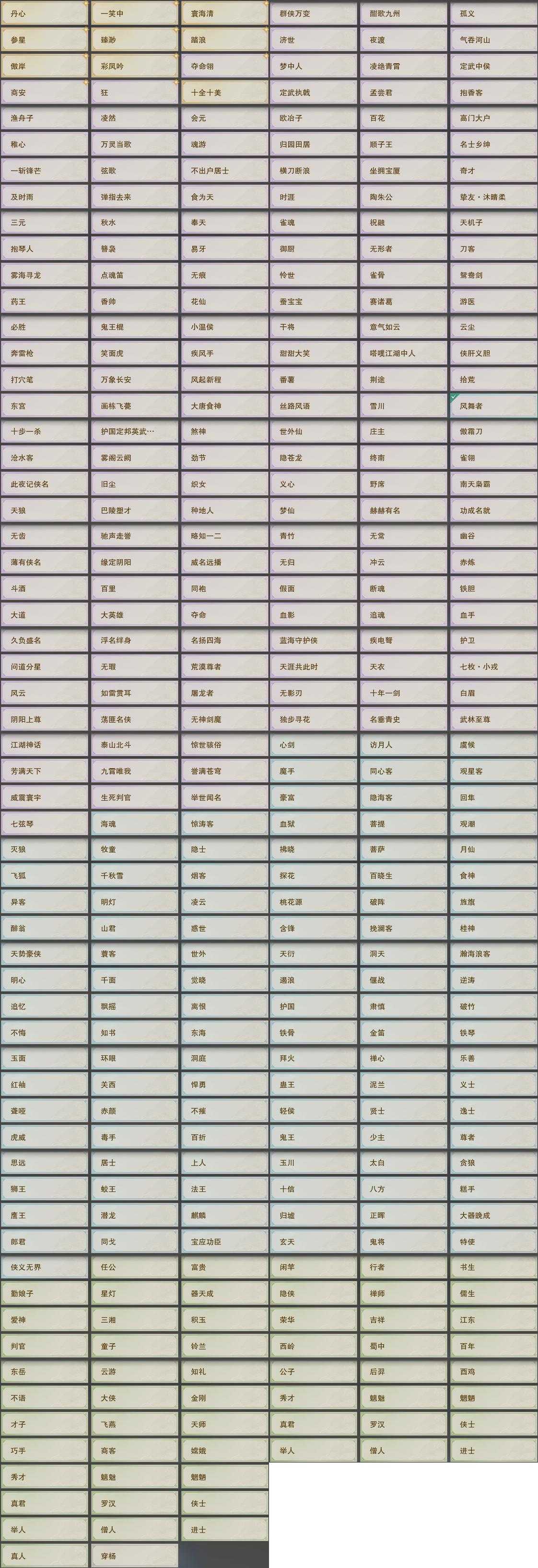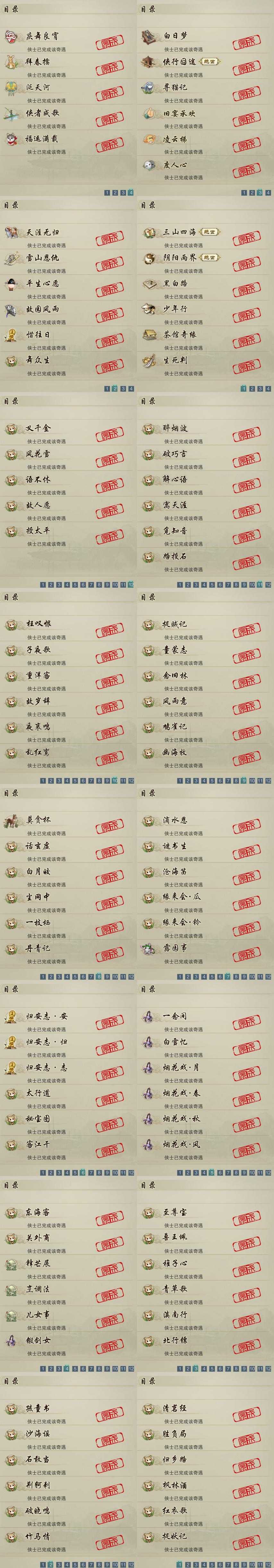 【奇遇】23个[白日梦, 天涯无归, 三山四海, 雪山恩仇, 阴阳两界, 平生心愿, 黑白路, 惜往日, 少年行, 故园风雨, 舞众生, 侠行囧途, 寻猫记, 茶馆奇缘, 庆舞良宵, 生死判, 凌云梯, 度人心, 旧宴承欢, 泛天河, 侠者成歌, 拜春擂, 福运满载]