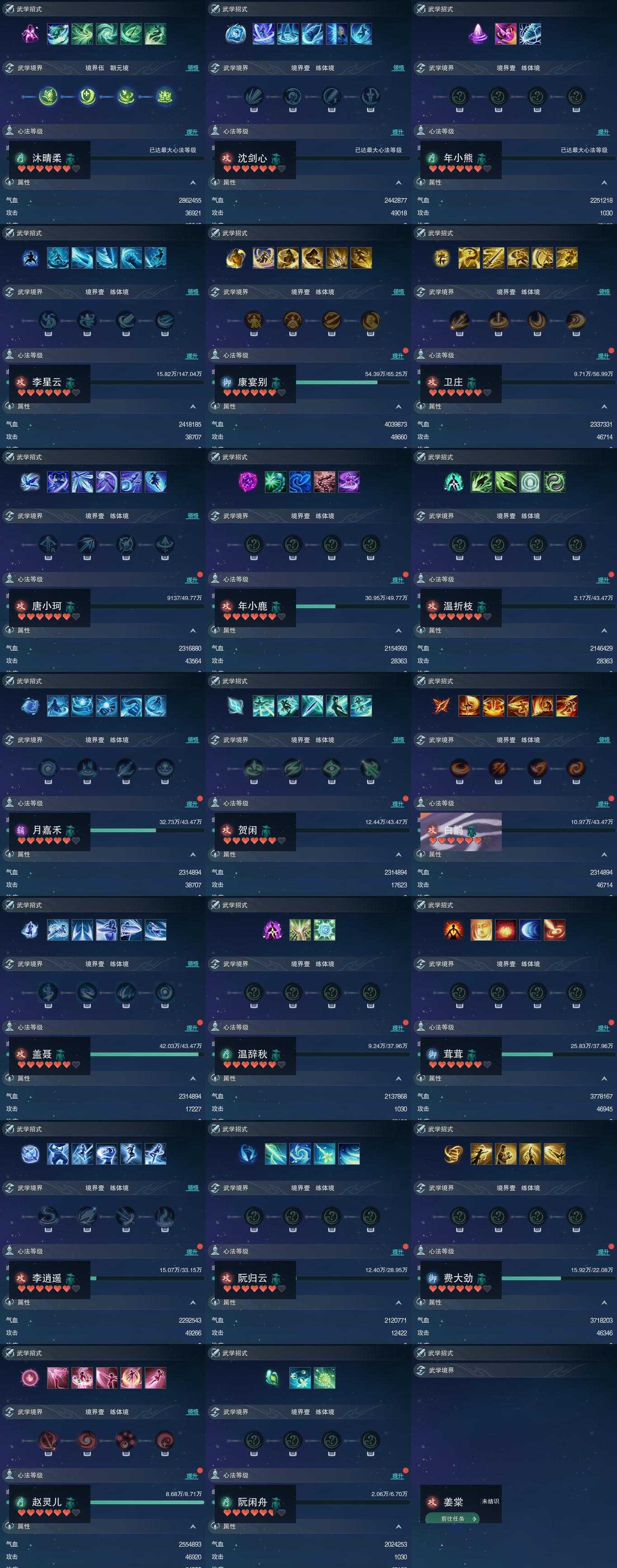 【同伴】沐晴柔90级境界伍,沈剑心90级境界壹,年小熊90级境界壹,李星云87级境界壹,康宴别81级境界壹,卫庄志80级境界壹,唐小珂79级境界壹,年小鹿79级境界壹,温折枝78级境界壹,月嘉禾78级境界壹,贺闲志78级境界壹,白鹊志78级境界壹,盖聂志78级境界壹,温辞秋77级境界壹,茸茸志77级境界壹,李逍遥76级境界壹,阮归云75级境界壹,费大劲73级境界壹,赵灵儿66级境界壹,阮闲舟64级境界壹,姜棠级