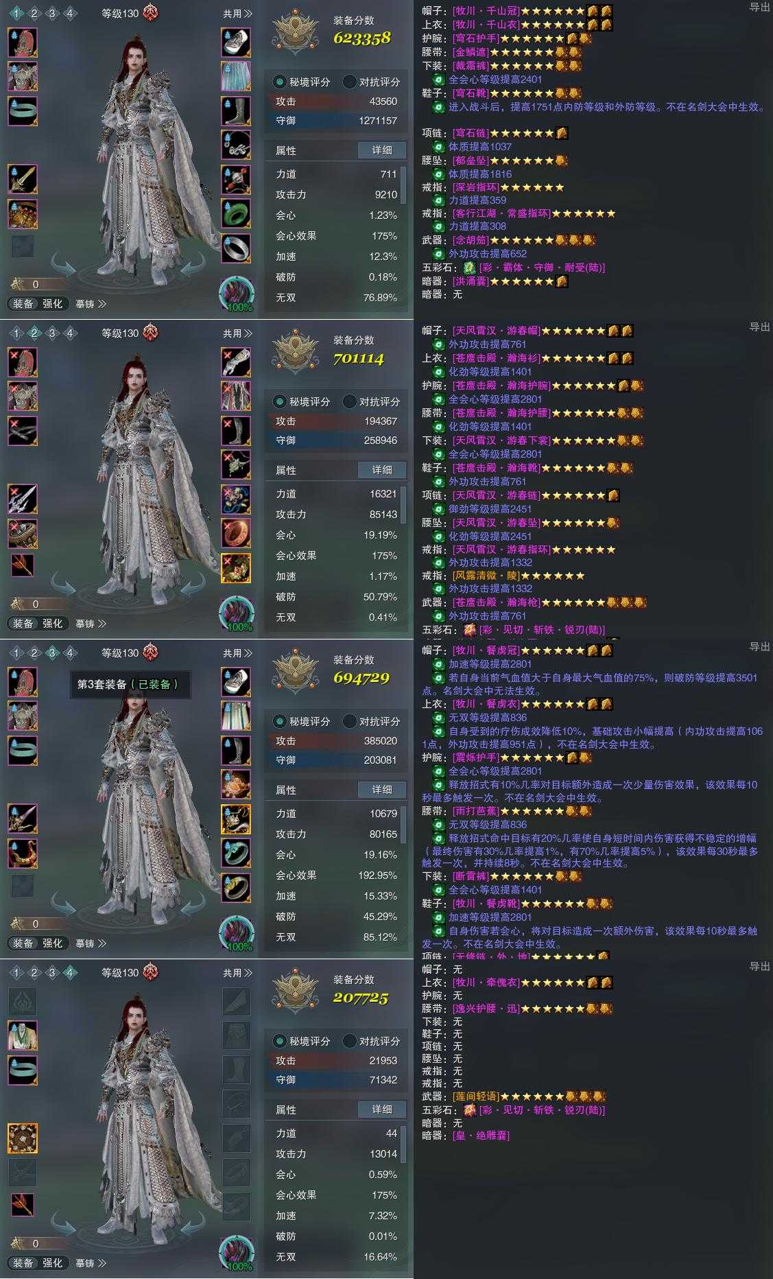 【装备】130级,铁牢律PVE623358,傲血战意PVP701114,傲血战意PVE694729,装备四207725