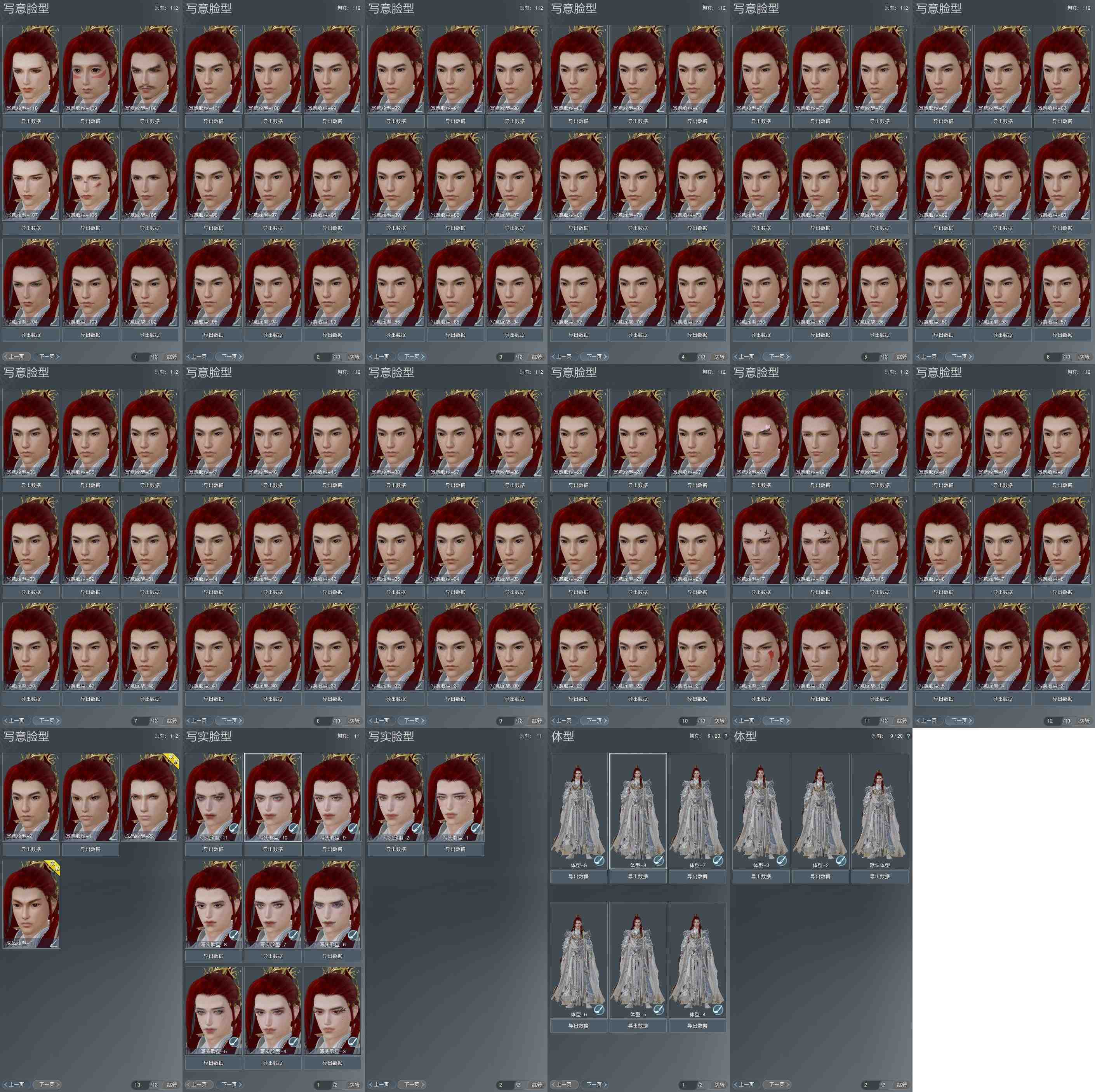 【捏脸】写意脸型112个,写实脸型11个,体型9个