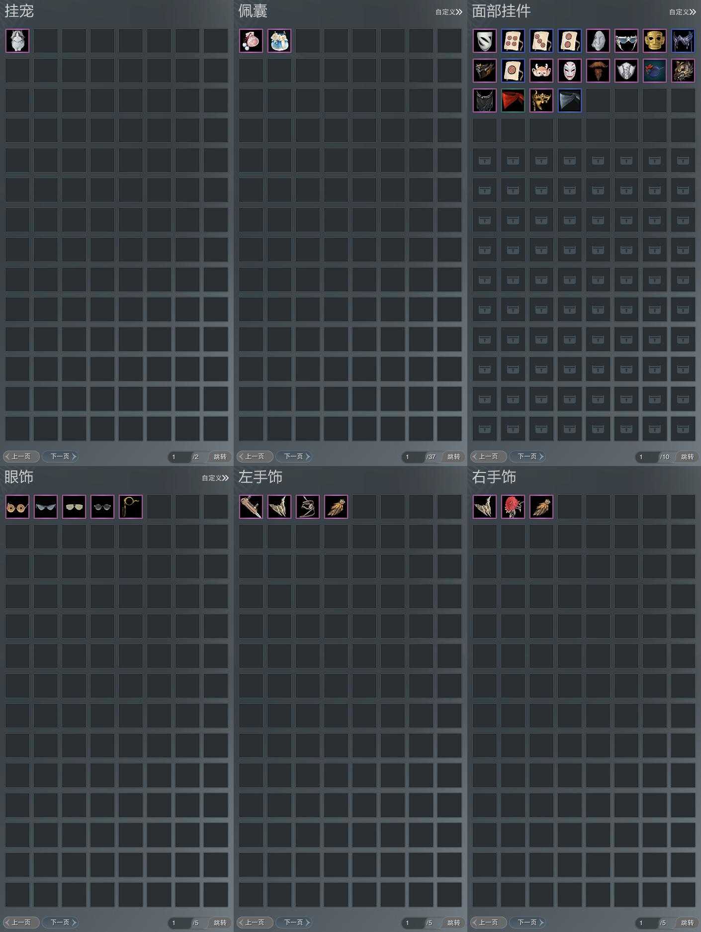 【肩饰】10左,9右,[银枪照夜·裂云·左, 玄龙夜舞·左, 双鱼曳波·如意·左, 云旌望捷·左, 短褐狂裘·左, 歃血关山·左, 华焰披锦·左][银枪照夜·裂云·右, 玄龙夜舞·右, 云旌望捷·右, 短褐狂裘·右, 歃血关山·右]