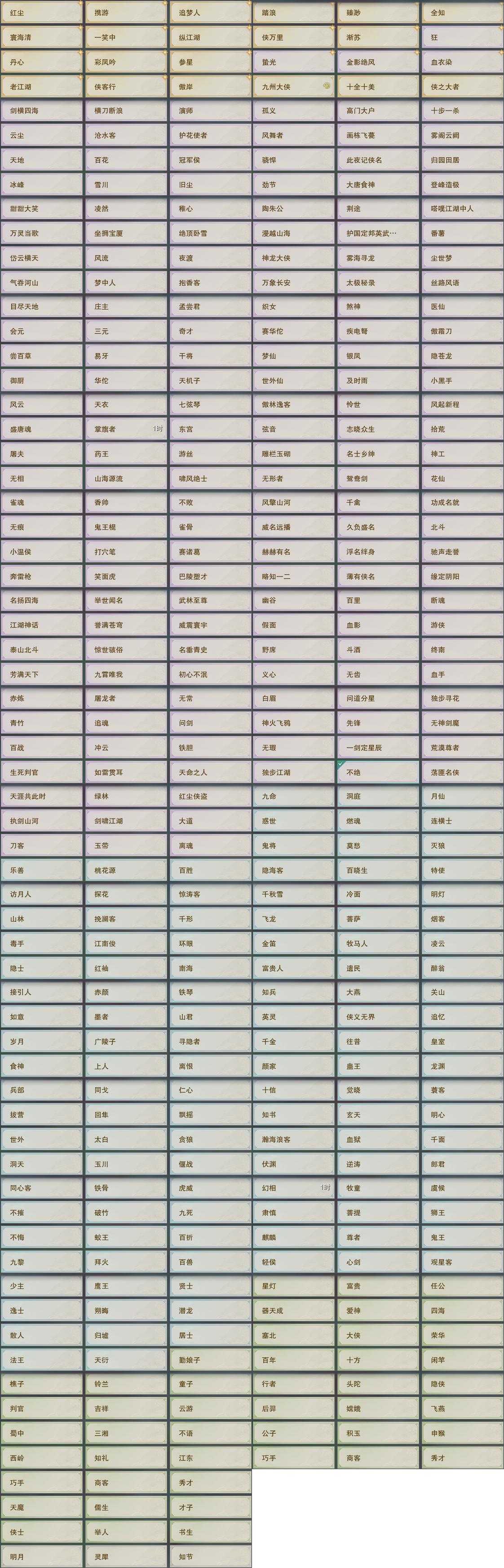 【称号】[血衣染, 纵江湖, 侠万里]