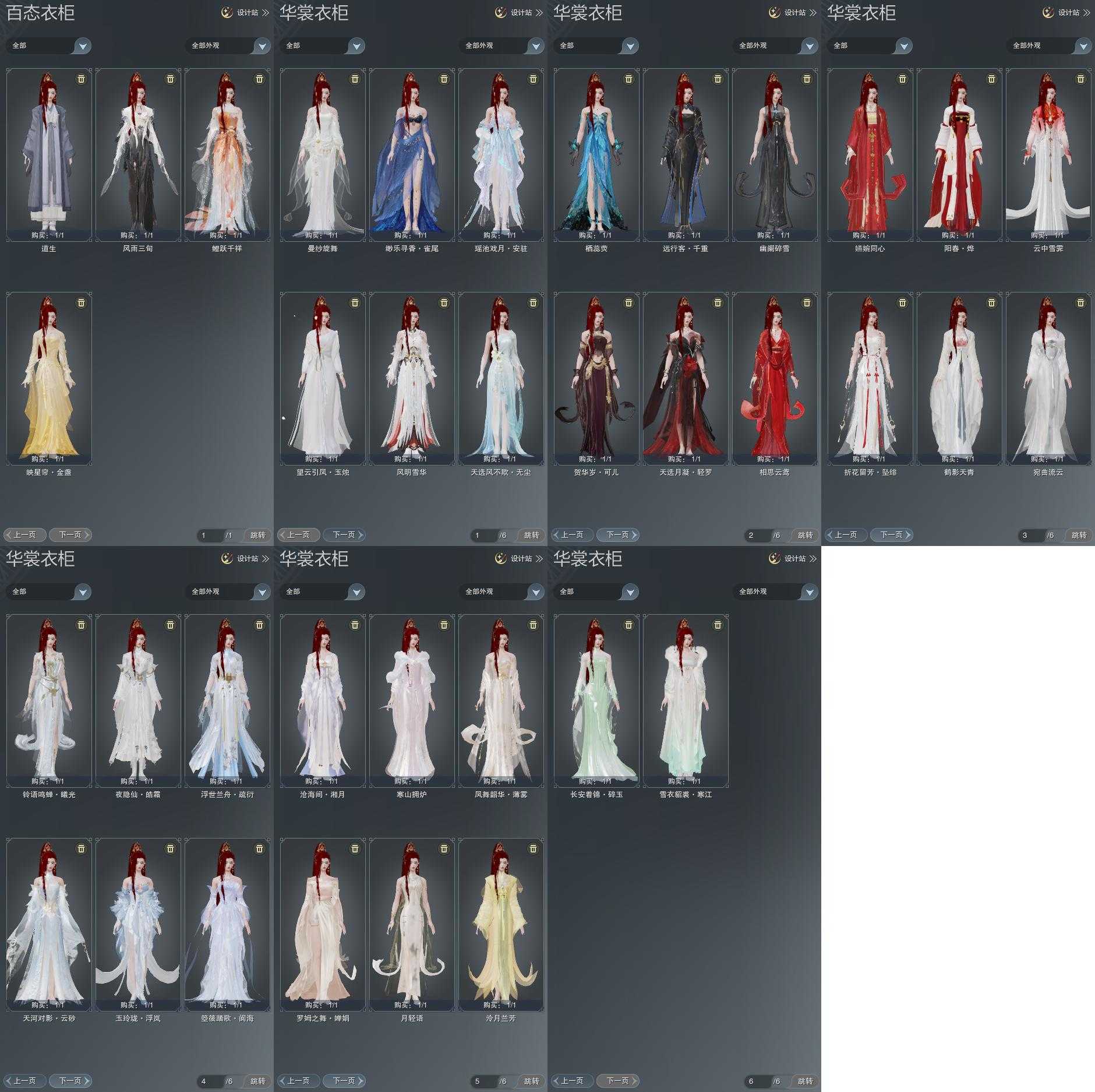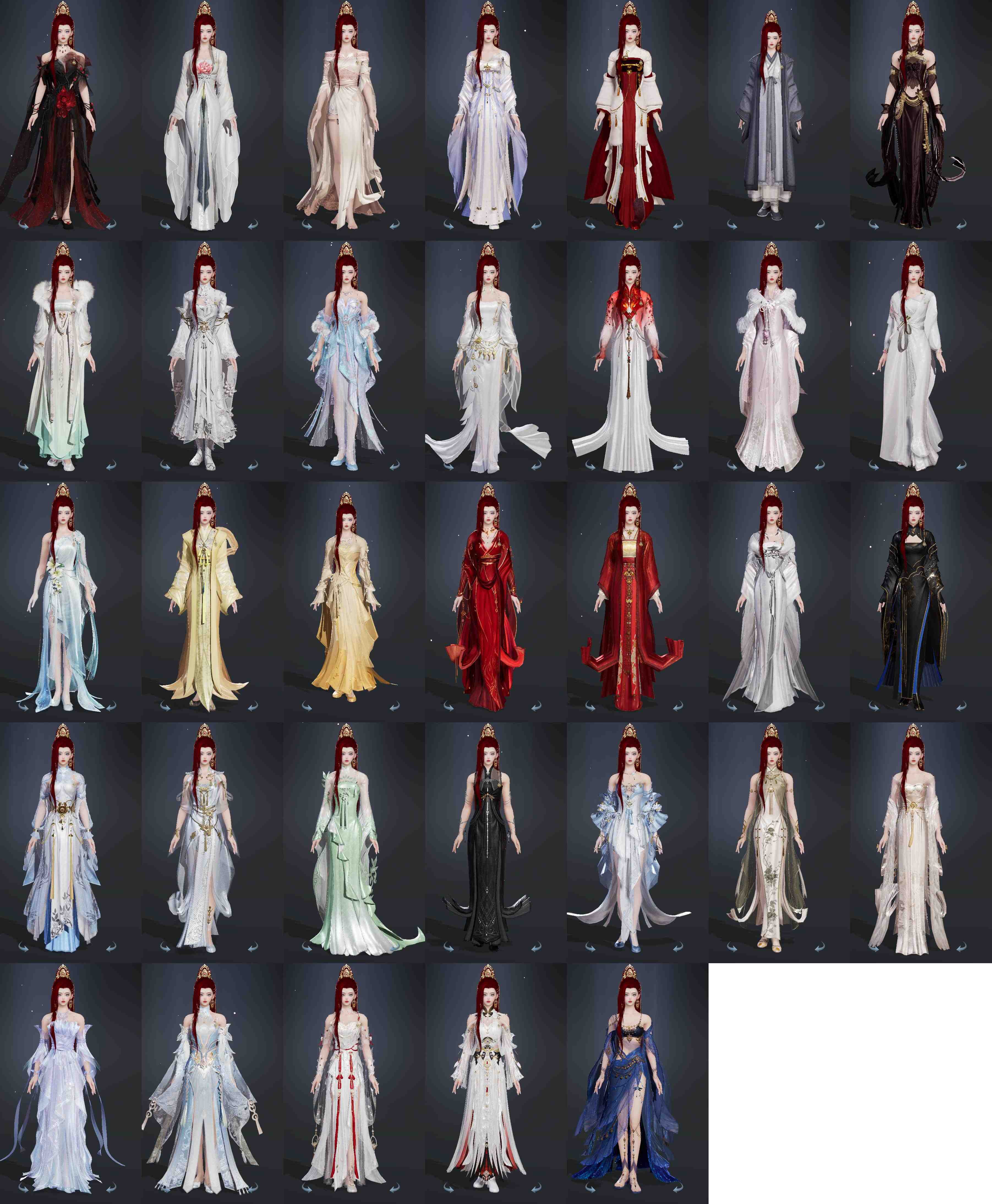 盒子:[丝路盒, 雪月盒, 踏云盒, 二代花朝盒, 猪盒, 旗袍盒, 三七盒, 四代七夕盒, 白凤舞盒(豪), 蓝腿盒(缺白发), 泠月盒(缺背挂), 青盒, 二代重阳盒, 蓝鼠盒, 棉袄盒, 蓝玲珑盒, 白楼兰盒, 扇盒, 蓝寻香(豪)]