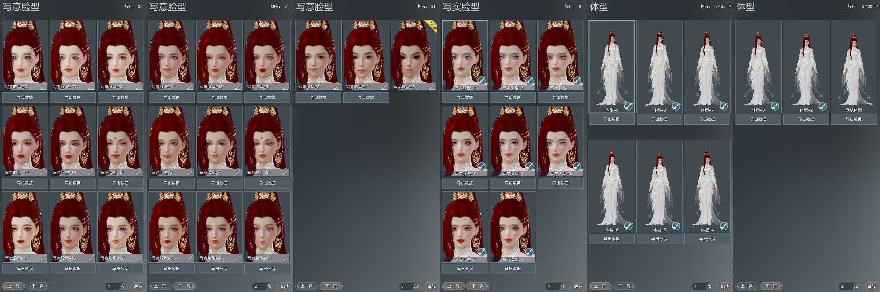 【捏脸】写意脸型21个,写实脸型8个,体型9个