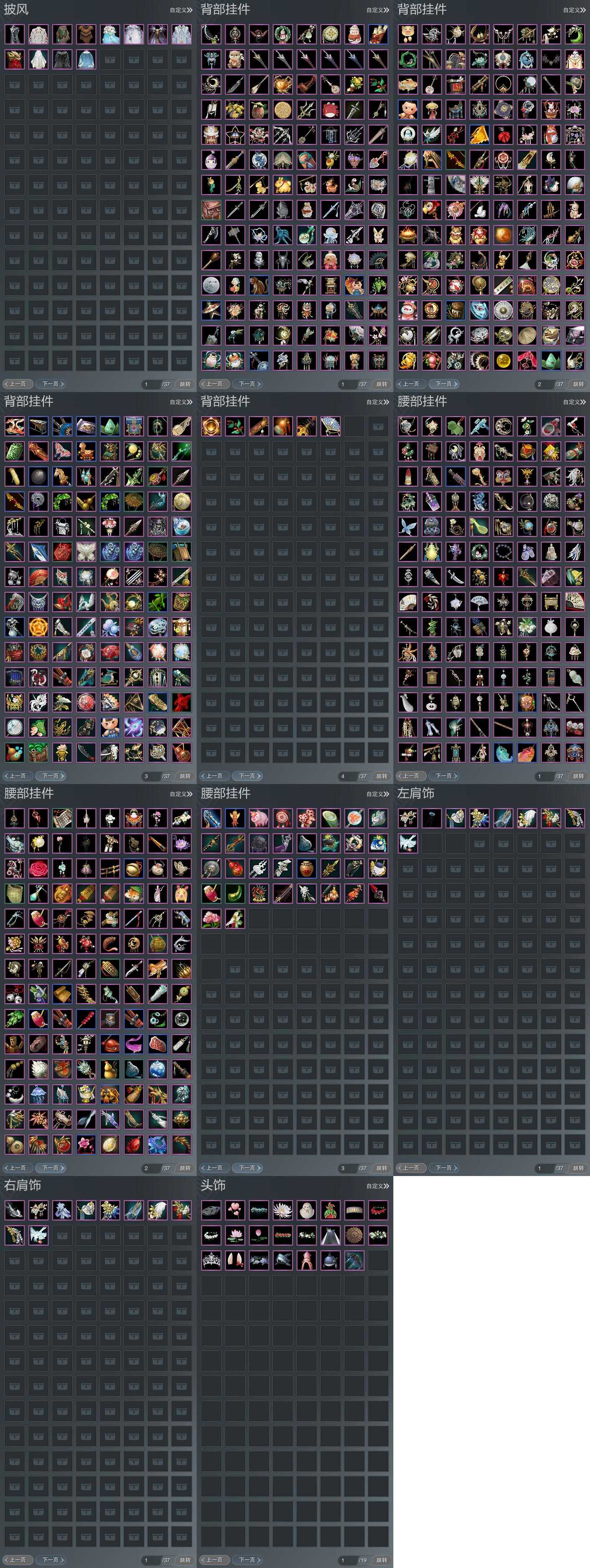 【肩饰】9左,10右,[风明雪华·左, 海升霞蔚·霁景·左, 云中雪霁·左, 鹤影天青·左, 浮世兰舟·疏衍·左][风明雪华·右, 云中雪霁·右, 鹤影天青·右, 浮世兰舟·疏衍·右]