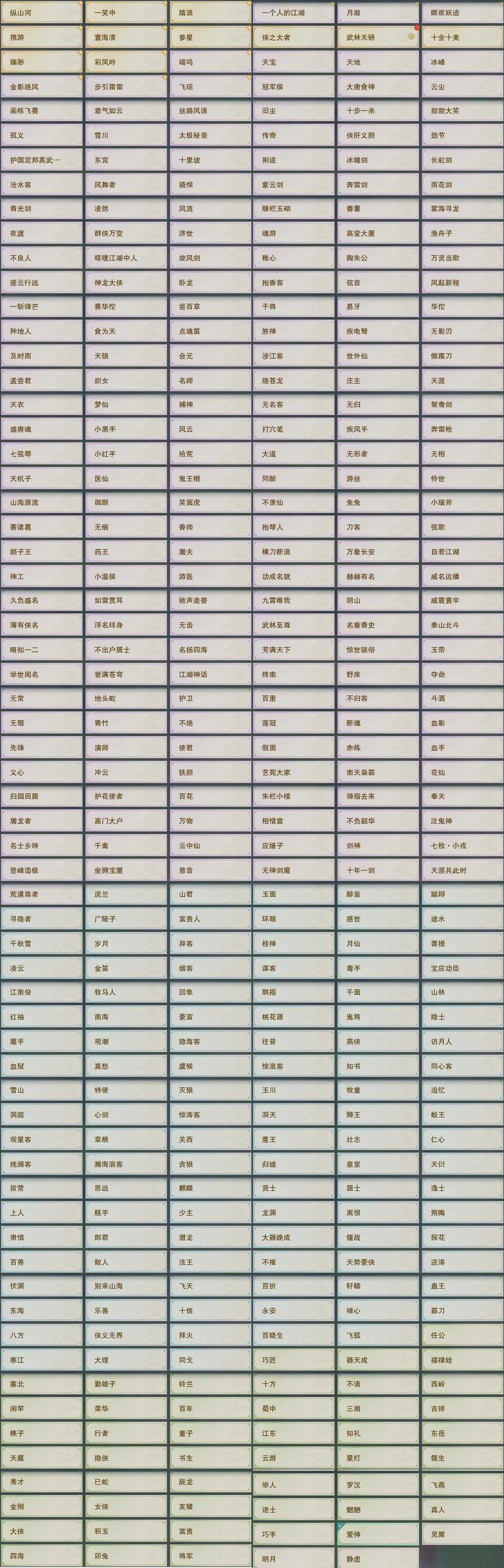 【奇珍】70个[枫林酒, 红衣歌, 归乡路, 胜负局, 孩童书, 捉妖记, 至尊宝, 石敢当, 稚子心, 滇南行]