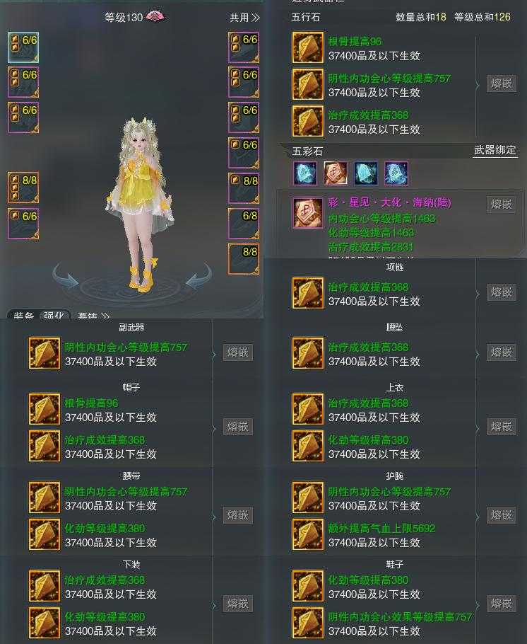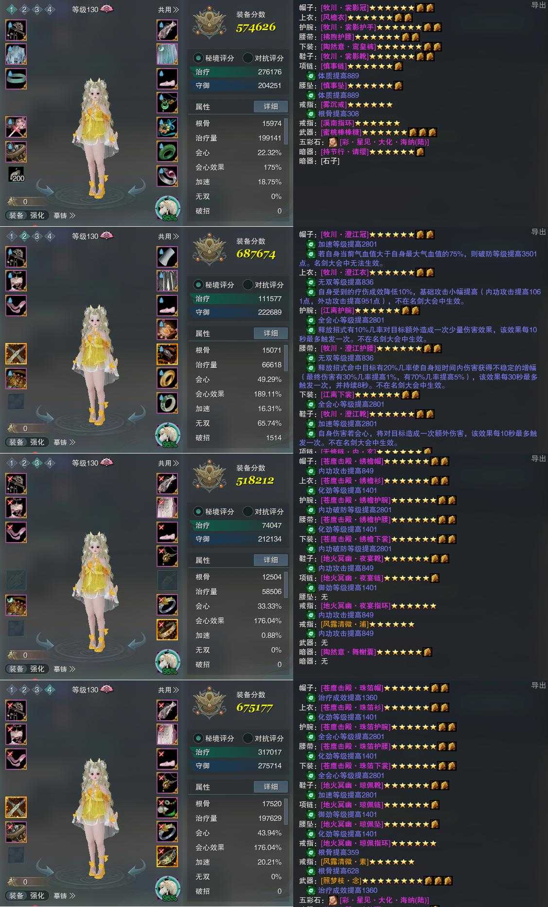 【装备】130级,云裳心经装备一574626,冰心诀PVE687674,冰心诀PVP518212,云裳心经PVE675177