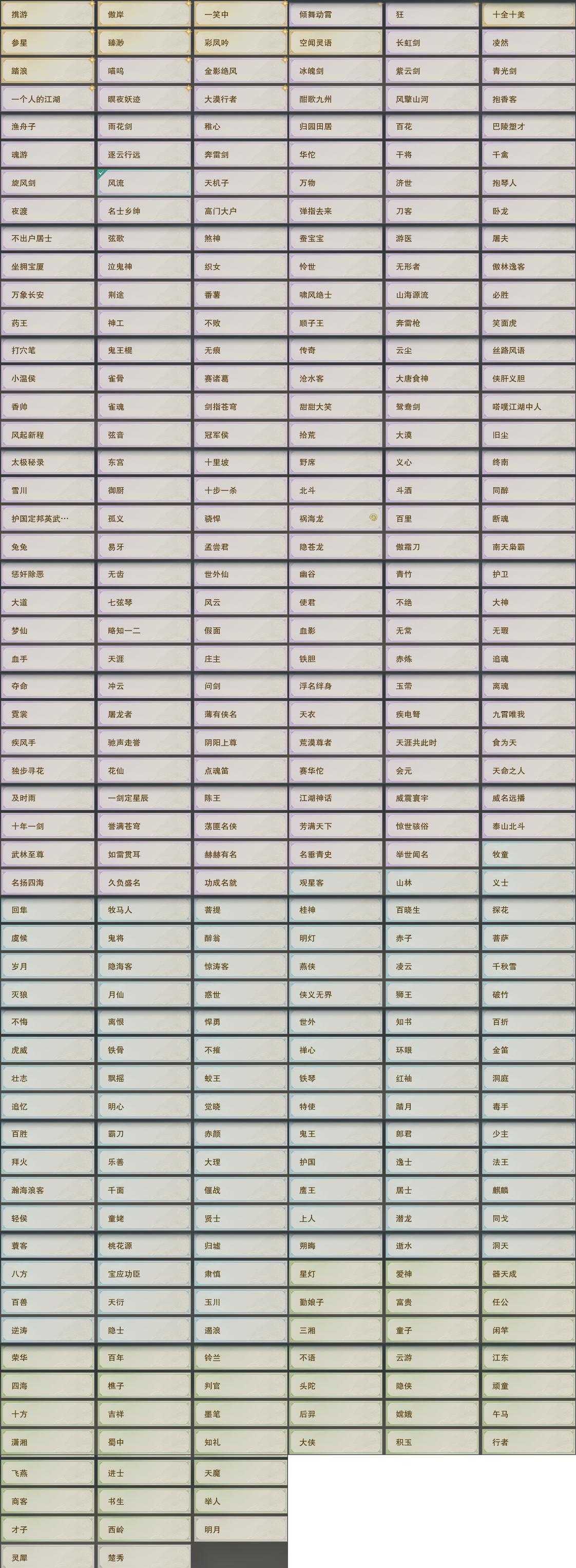 【奇珍】49个[枫林酒, 红衣歌, 归乡路, 胜负局, 孩童书, 清茗经, 捉妖记, 至尊宝, 石敢当, 稚子心]