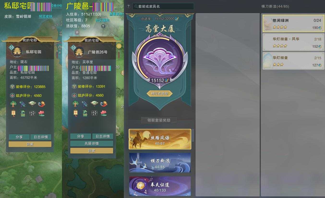 【家园】房屋等级16,社区等级了,私邸宅园,梓行点15152