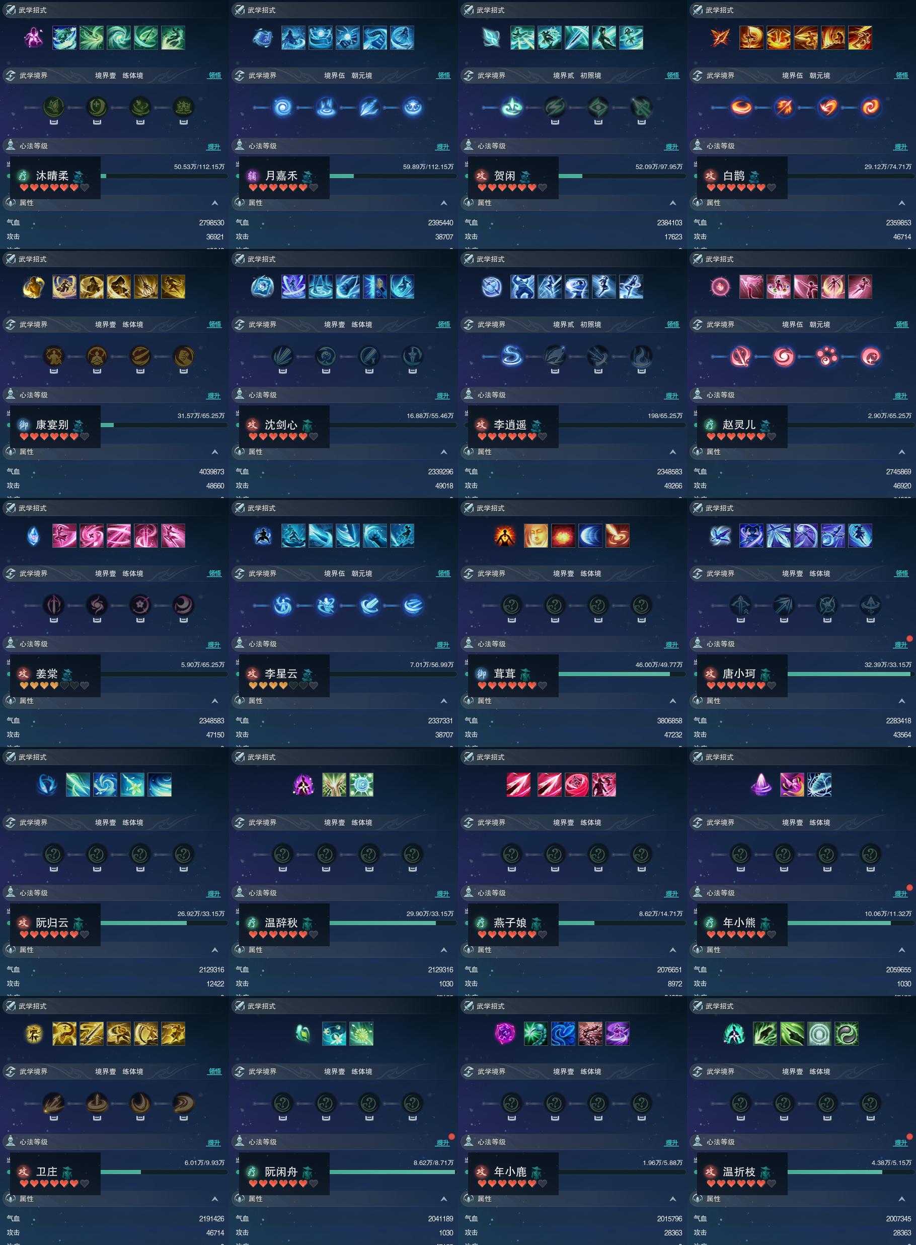 【同伴】沐晴柔85级境界壹,月嘉禾85级境界伍,贺闲意84级境界贰,白鹊慈82级境界伍,康宴别81级境界壹,沈剑心81级境界壹,李逍遥81级境界贰,赵灵儿81级境界伍,姜棠意81级境界壹,李星云80级境界伍,茸茸志79级境界壹,唐小珂76级境界壹,阮归云76级境界壹,温辞秋76级境界壹,燕子娘70级境界壹,年小熊68级境界壹,卫庄志67级境界壹,阮闲舟66级境界壹,年小鹿63级境界壹,温折枝62级境界壹