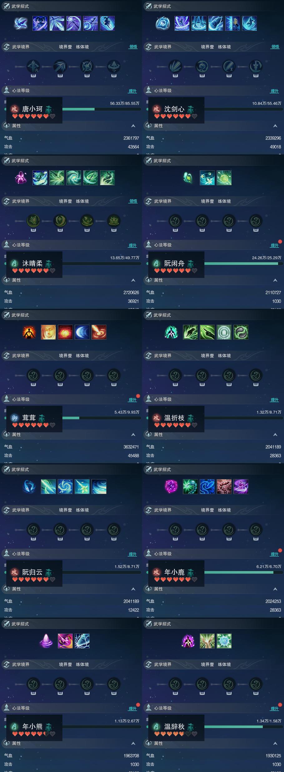 【同伴】唐小珂83级境界壹,沈剑心81级境界壹,沐晴柔79级境界壹,阮闲舟74级境界壹,茸茸志67级境界壹,温折枝66级境界壹,阮归云66级境界壹,年小鹿64级境界壹,年小熊57级境界壹,温辞秋53级境界壹