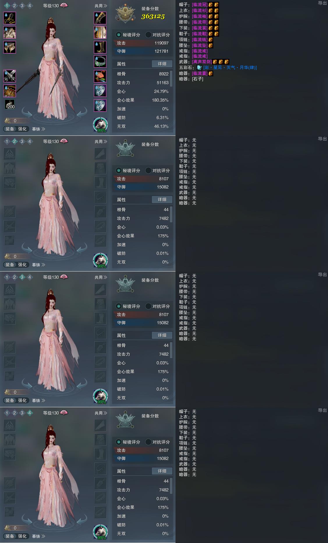 【装备】130级,冰心诀PVE363125,装备二0,装备三0,装备四0