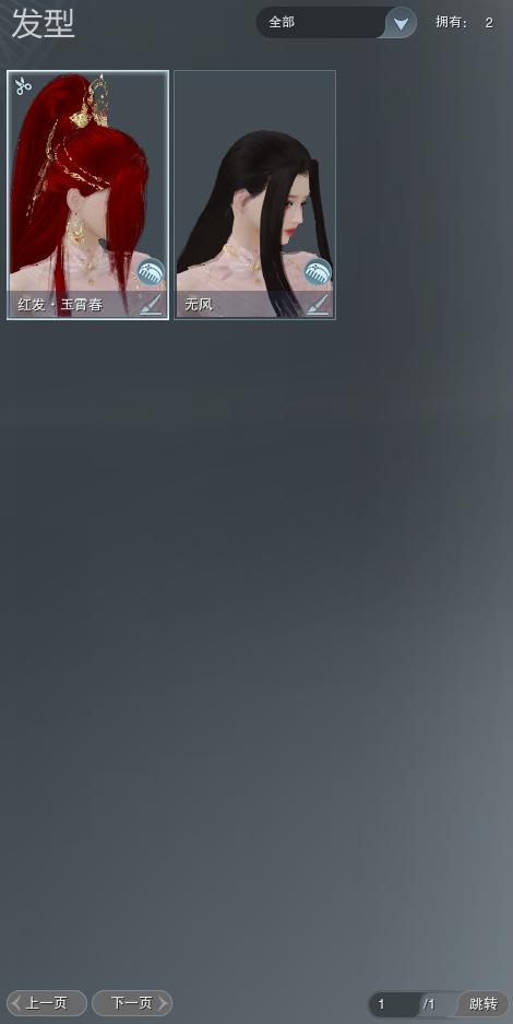 【发型】金发0个[], 红发1个[马红], 黑发1个, 白发0个, 盒子发型[], 总页数1