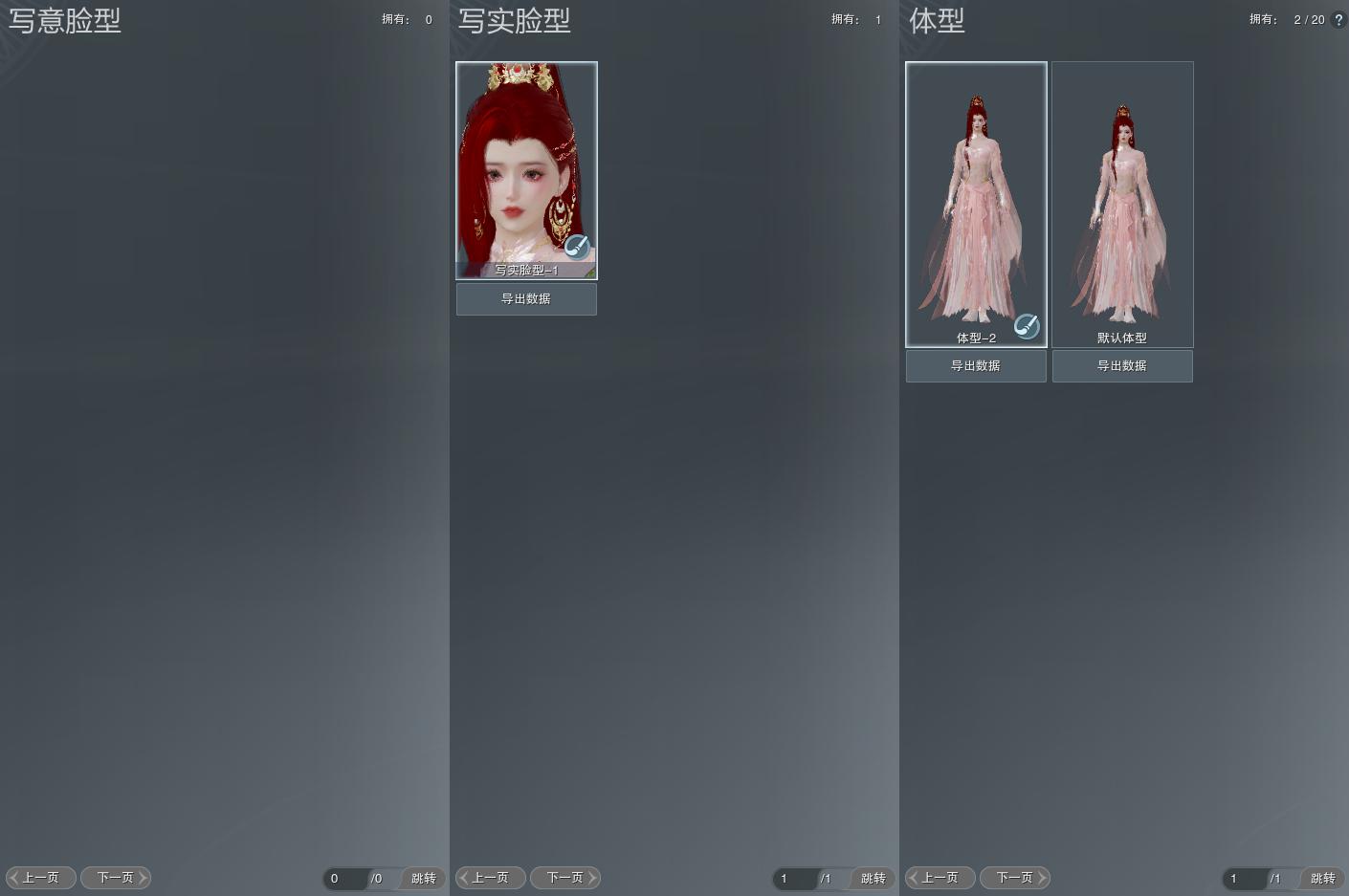 【捏脸】写意脸型0个,写实脸型1个,体型2个
